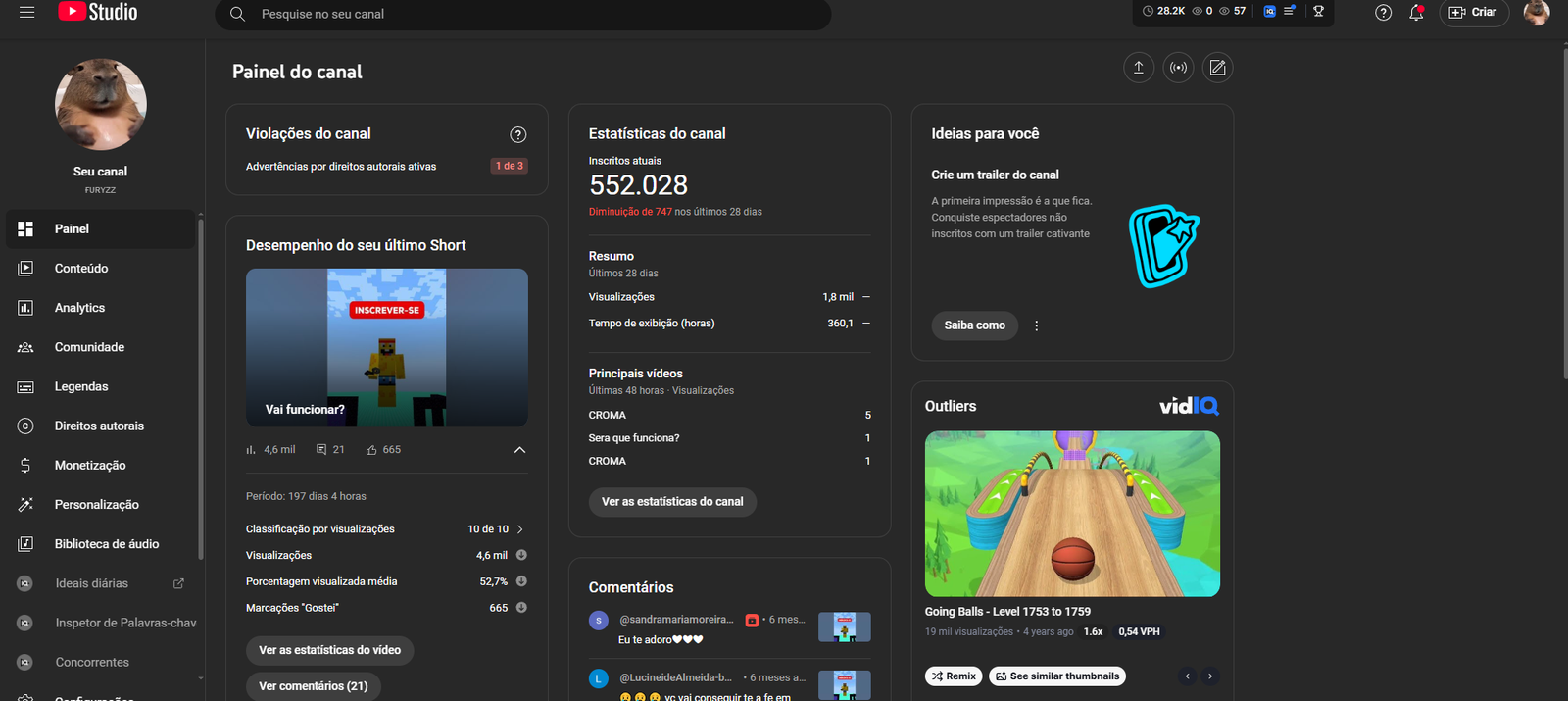 Canal com 552 mil inscritos, brasileiro de minecraft