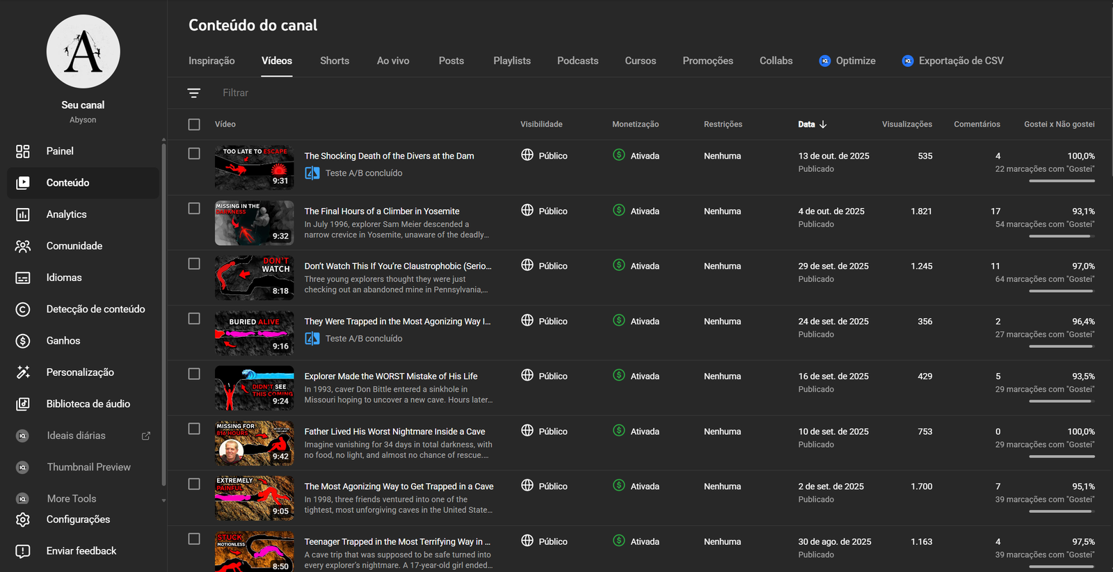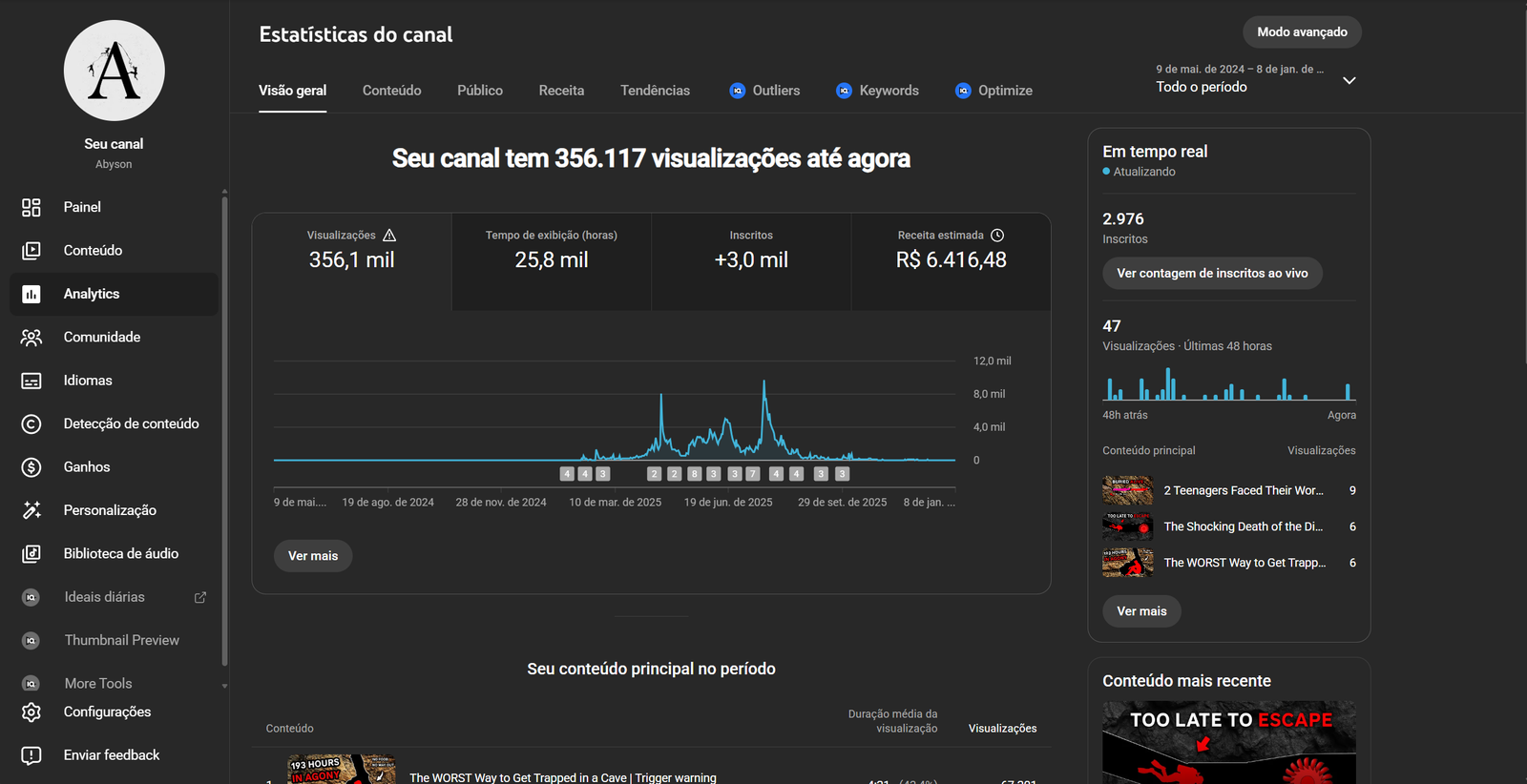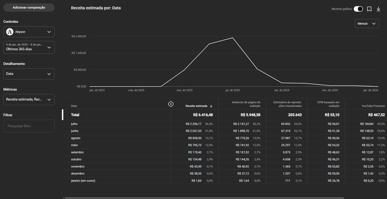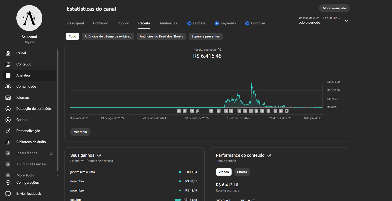 O canal está monetizado sem nenhuma restrição