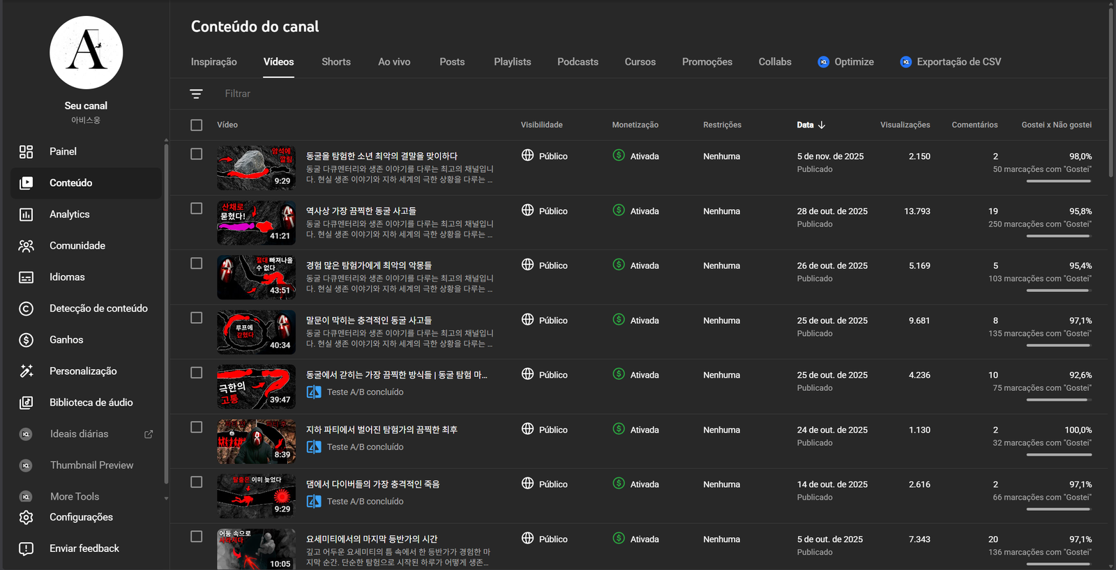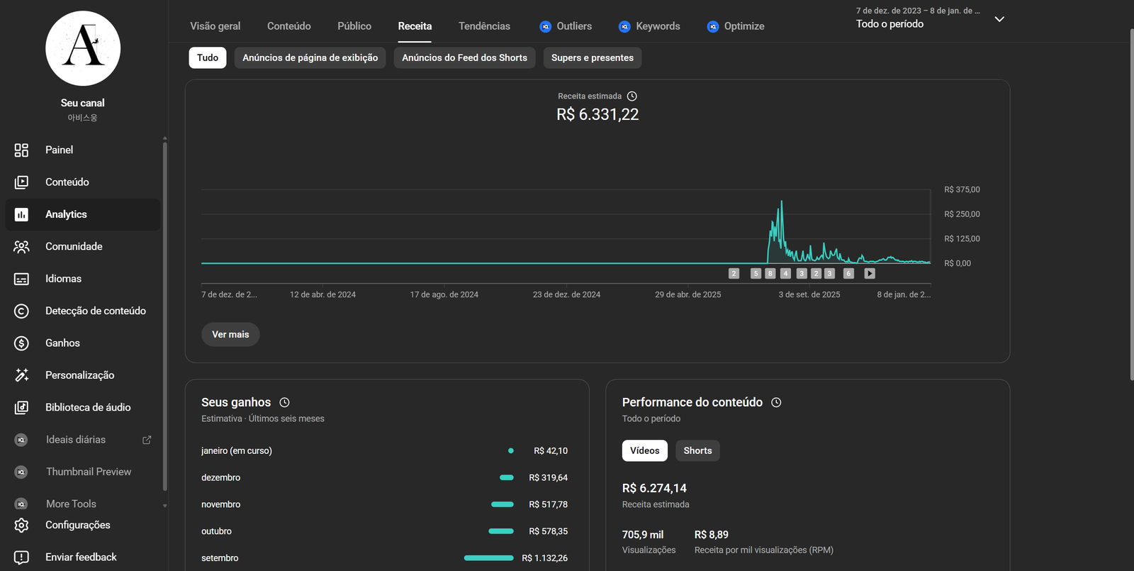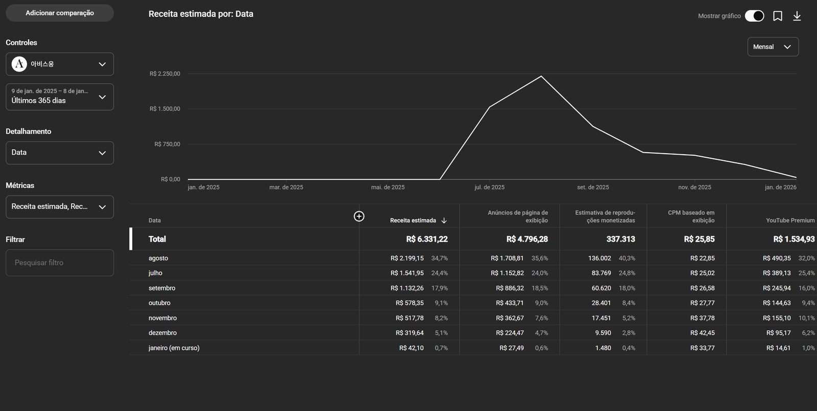 O canal está monetizado sem nenhuma restrição