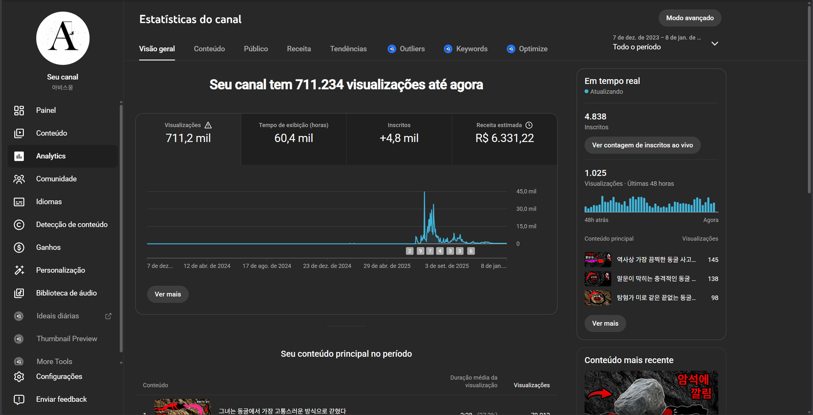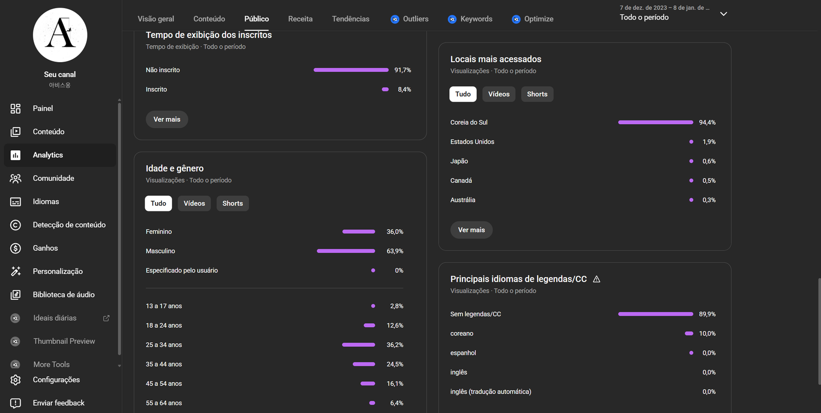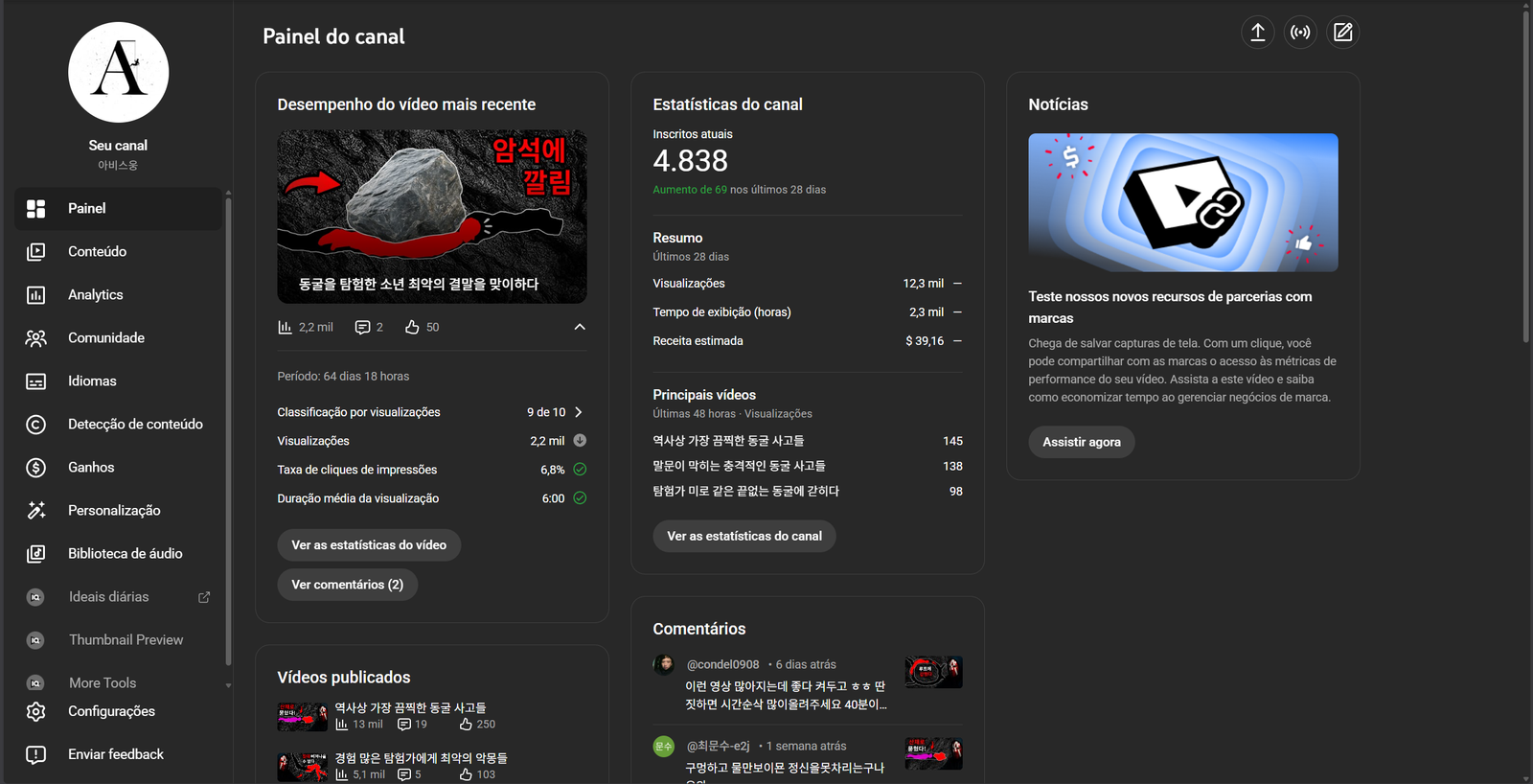 O canal está monetizado sem nenhuma restrição