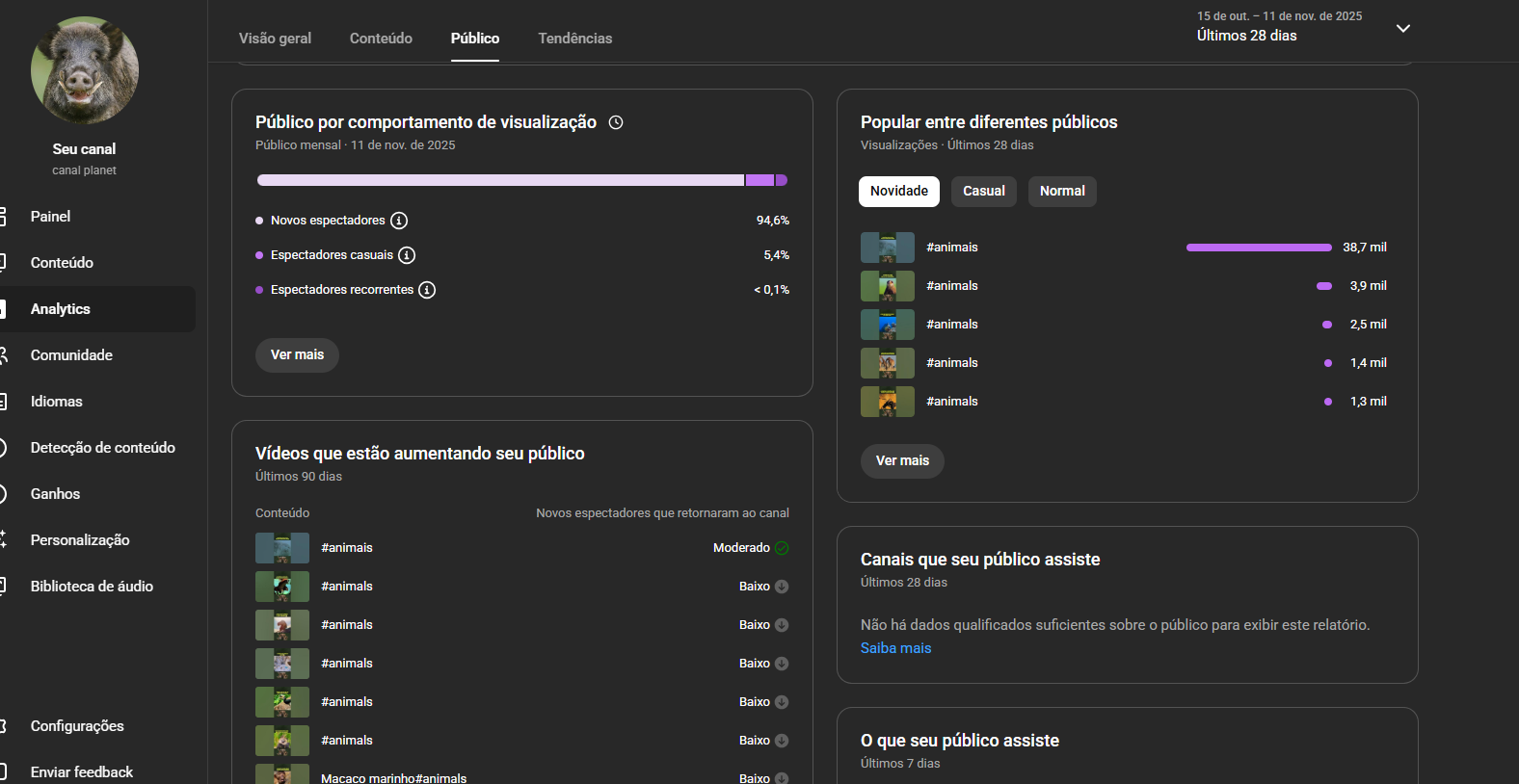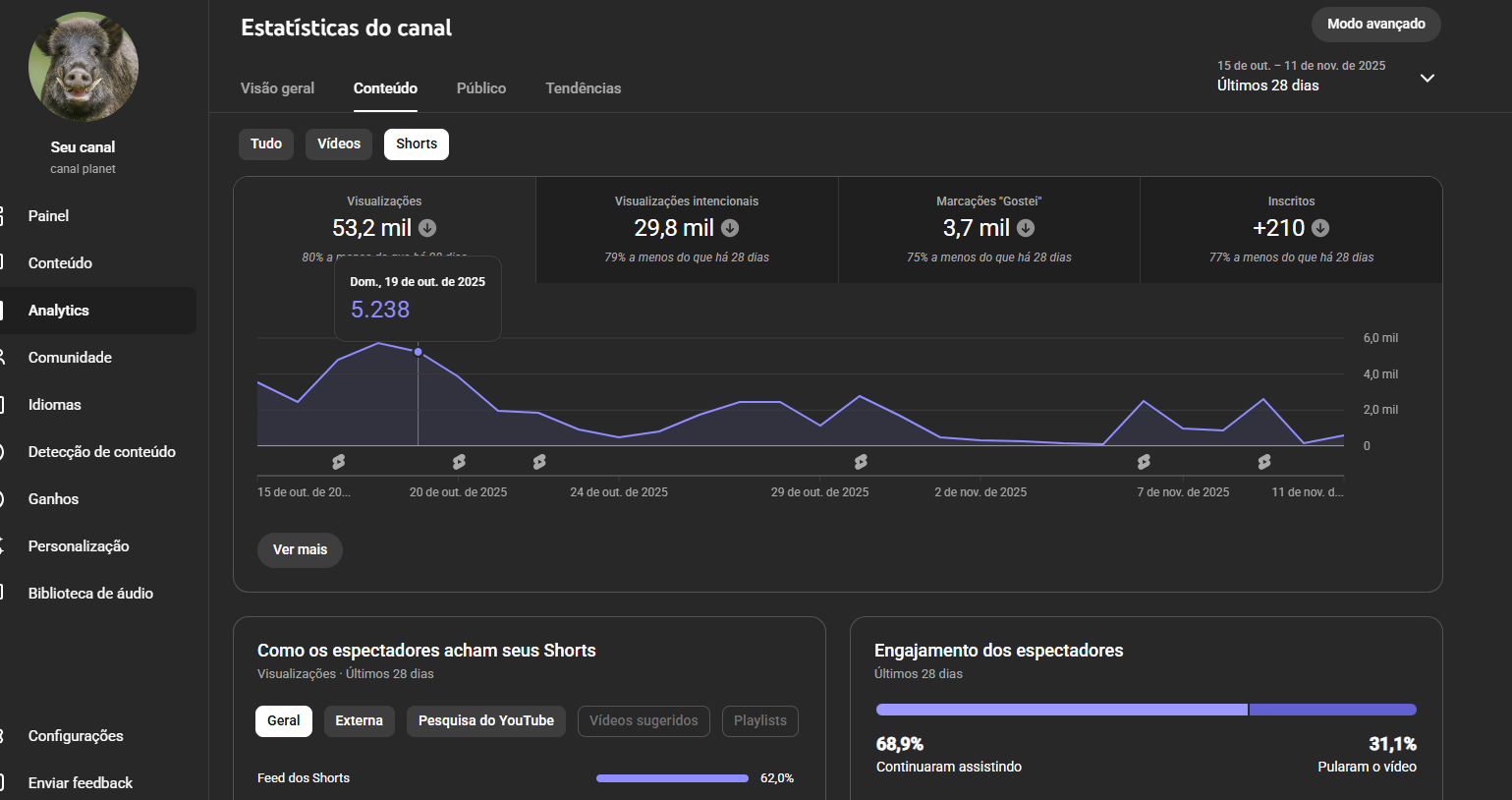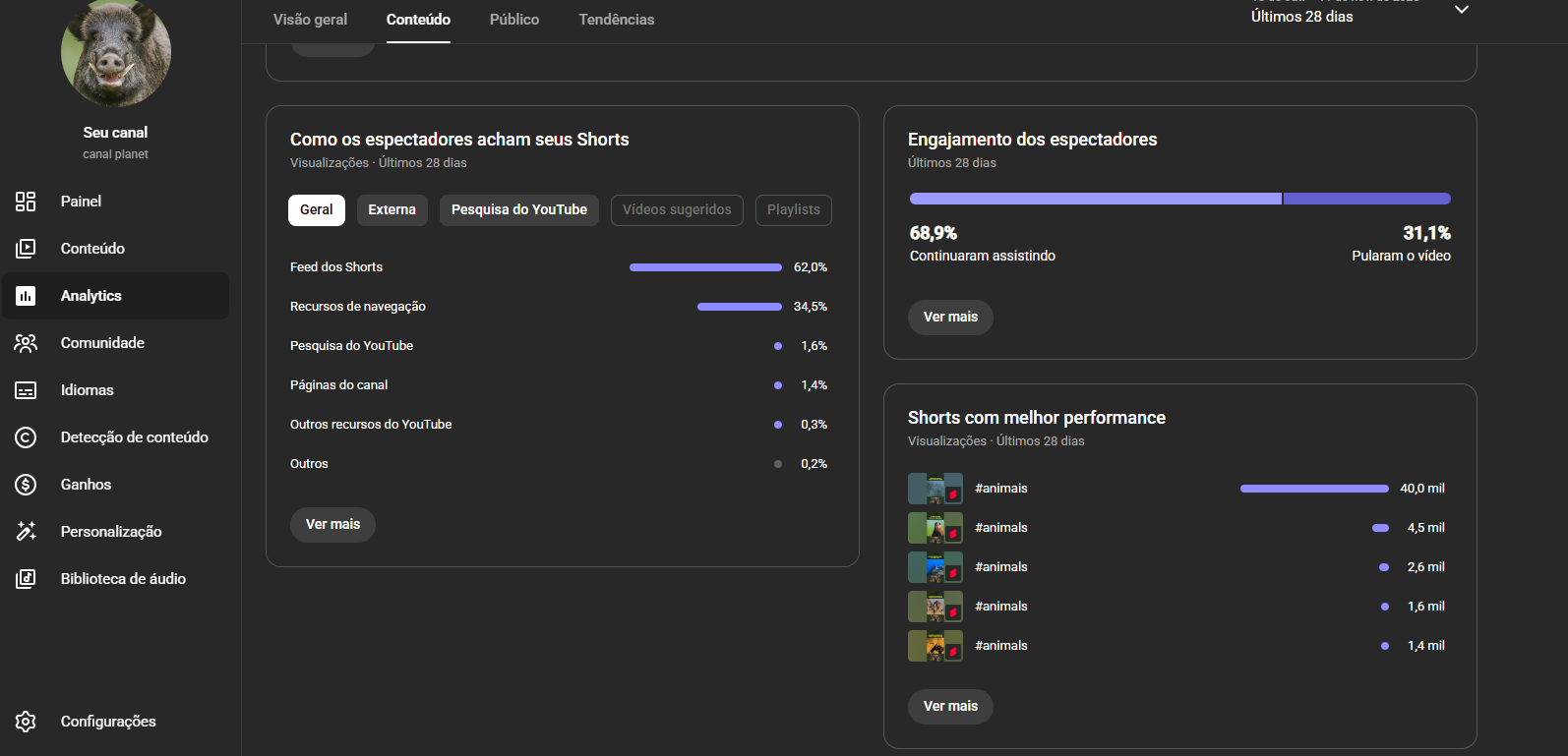 Canal bem engajado sempre pegando mais de 1000 visualizaçoes obs shorts