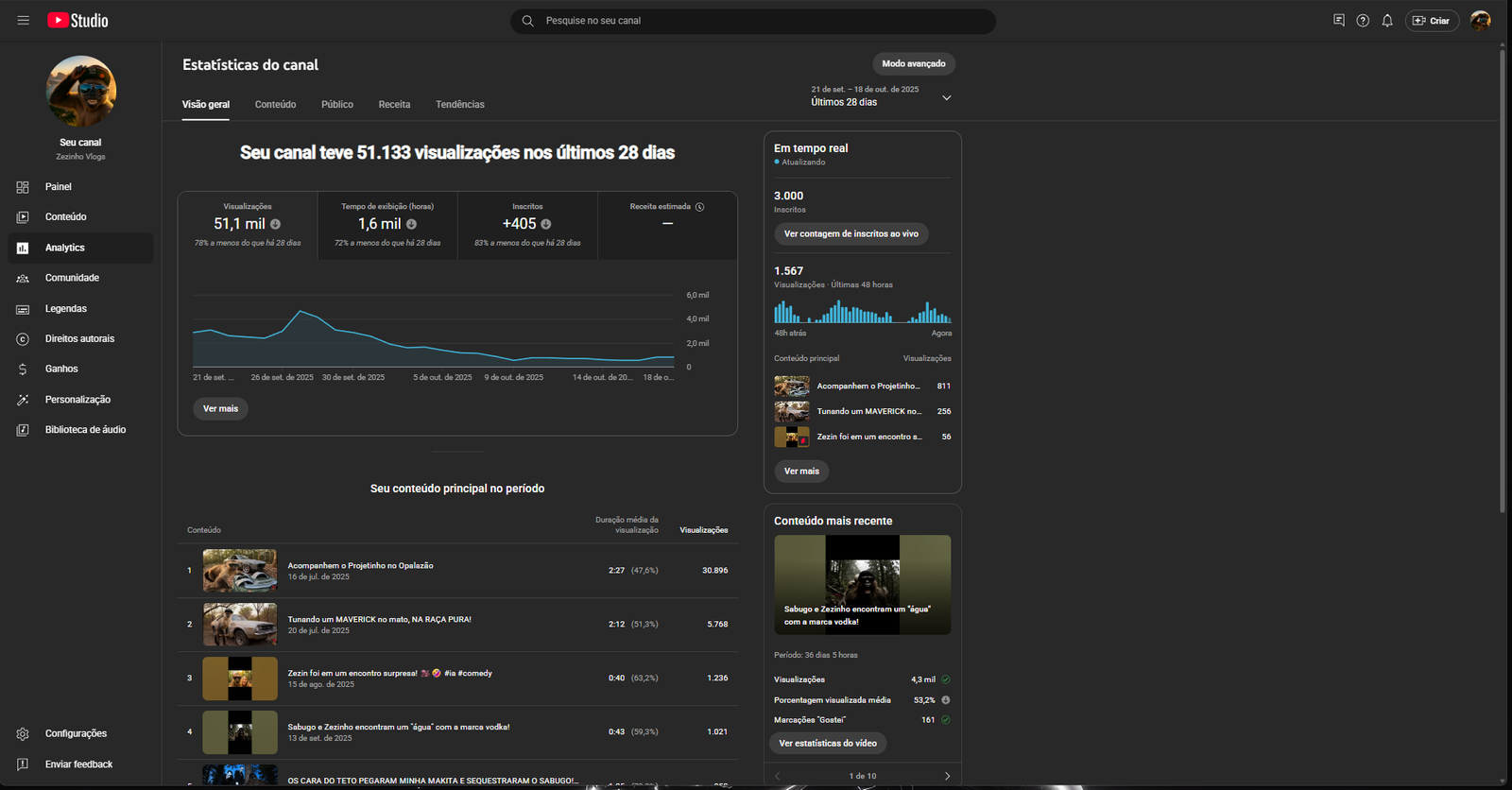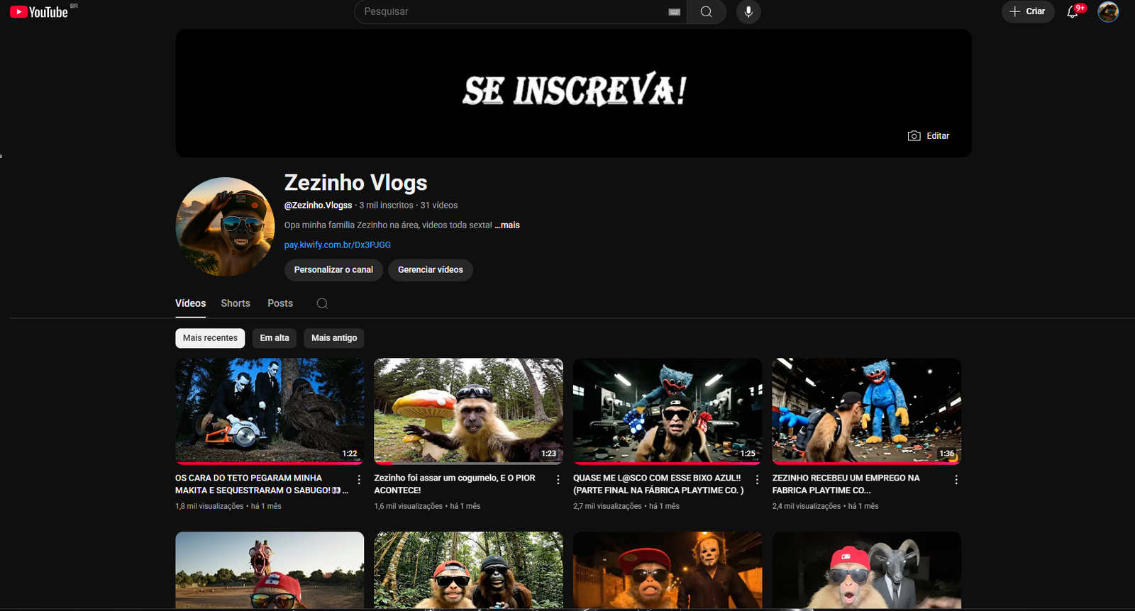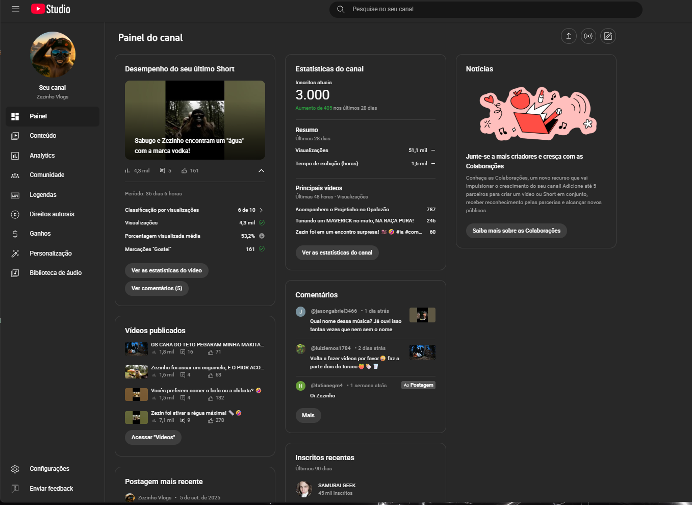 Canal pronto para continuar crescendo e atingir a monetização rapidamente.