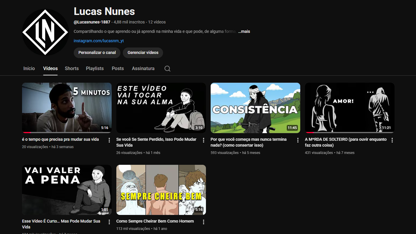 Este canal tem poucos vídeos e tem grande potencial para ser uma marca, ele pode funcionar como Dark, ou autoridade caso queira aparecer…