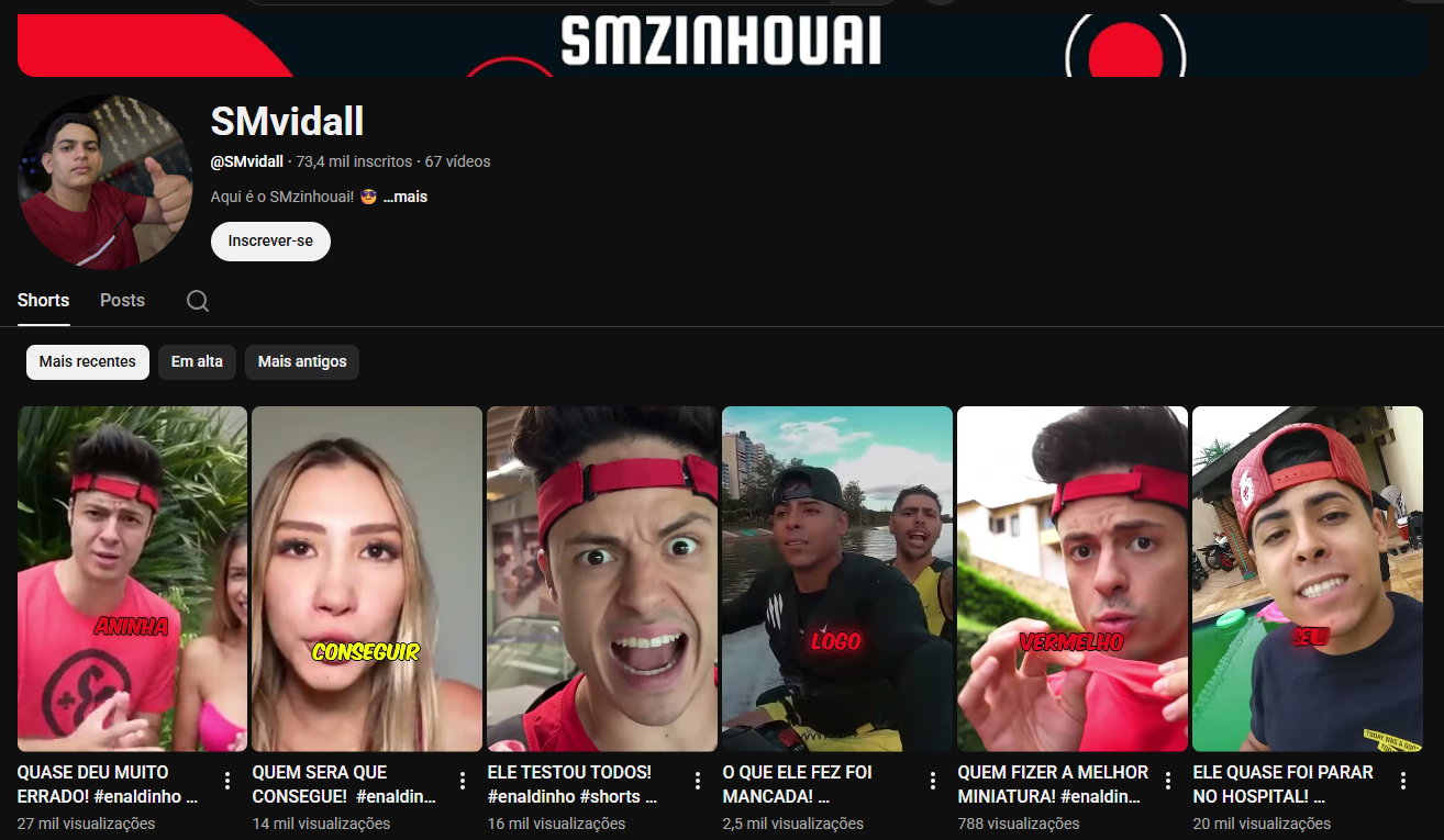 - Shorts batendo milhares de views constantemente