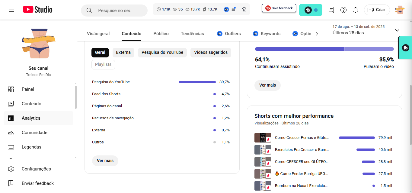 Conteúdos Publicados: 100 Shorts
