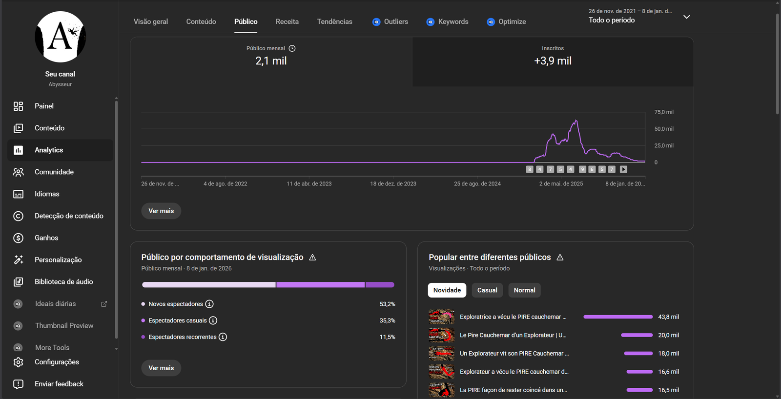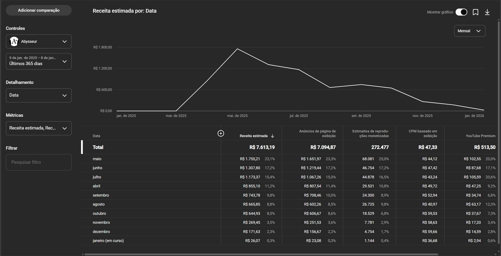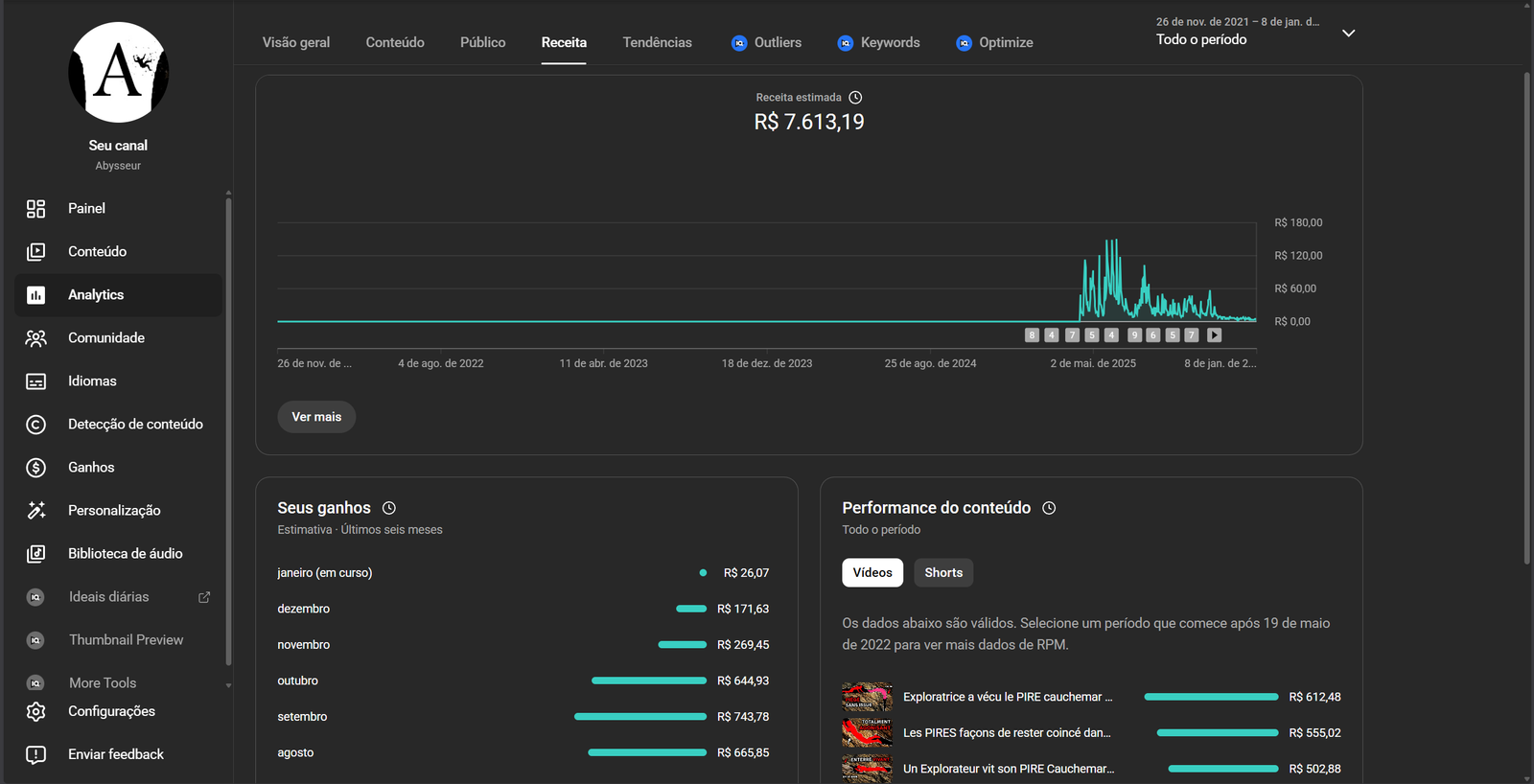 O canal está monetizado sem nenhuma restrição