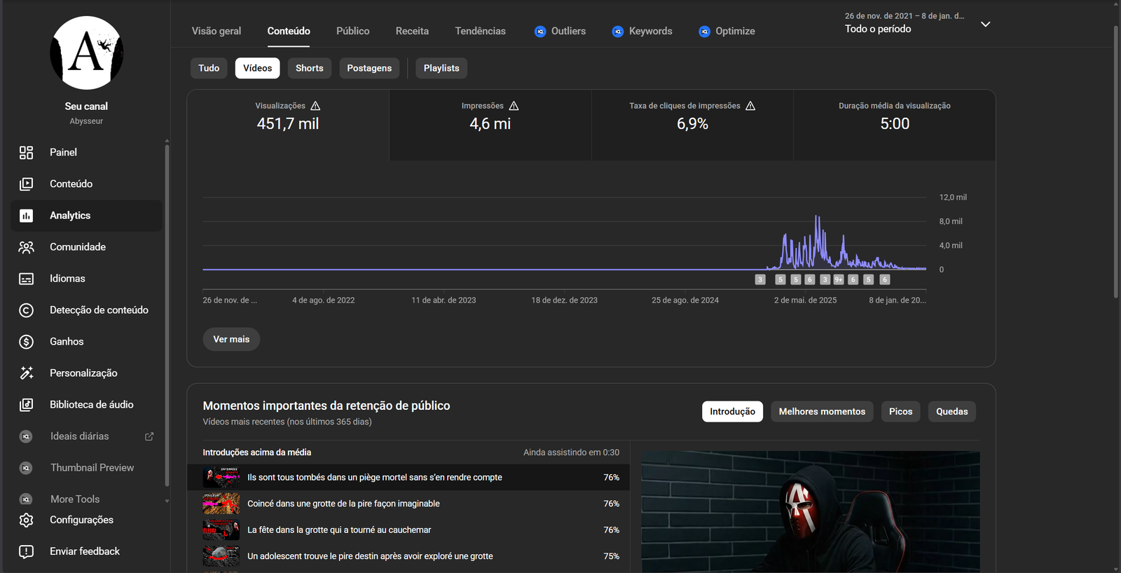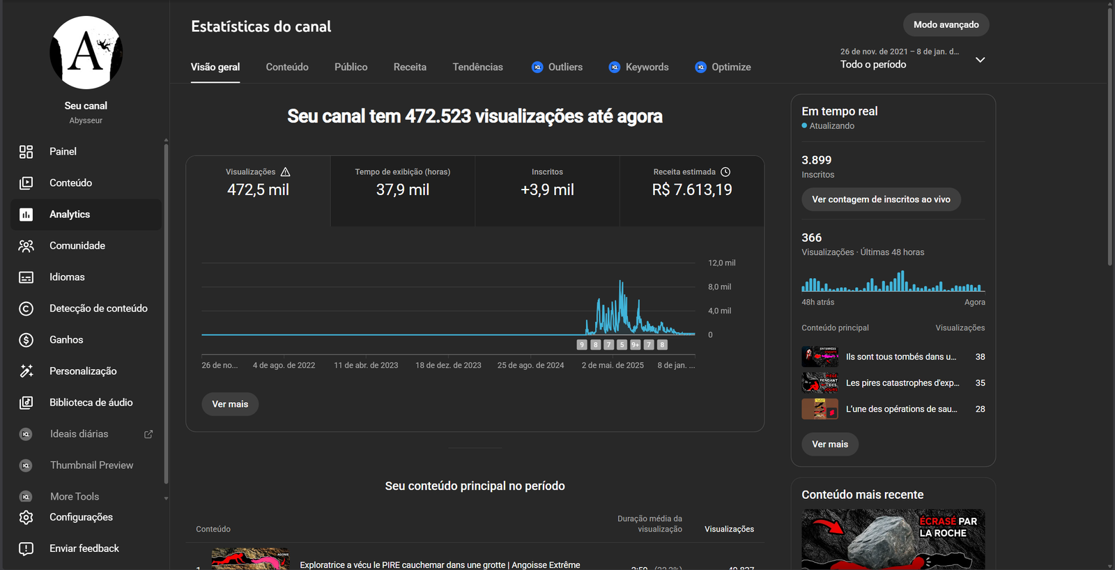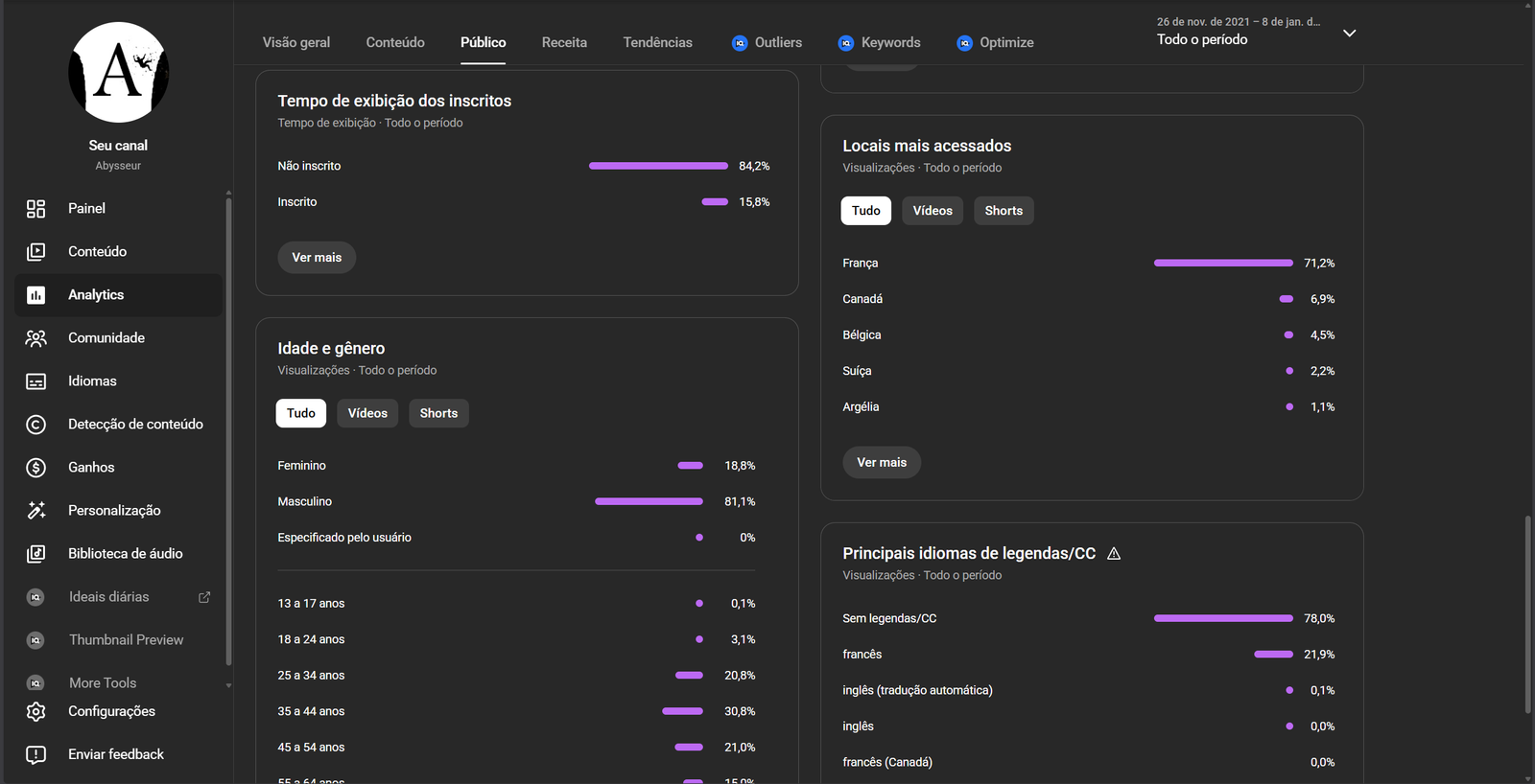 O canal está monetizado sem nenhuma restrição