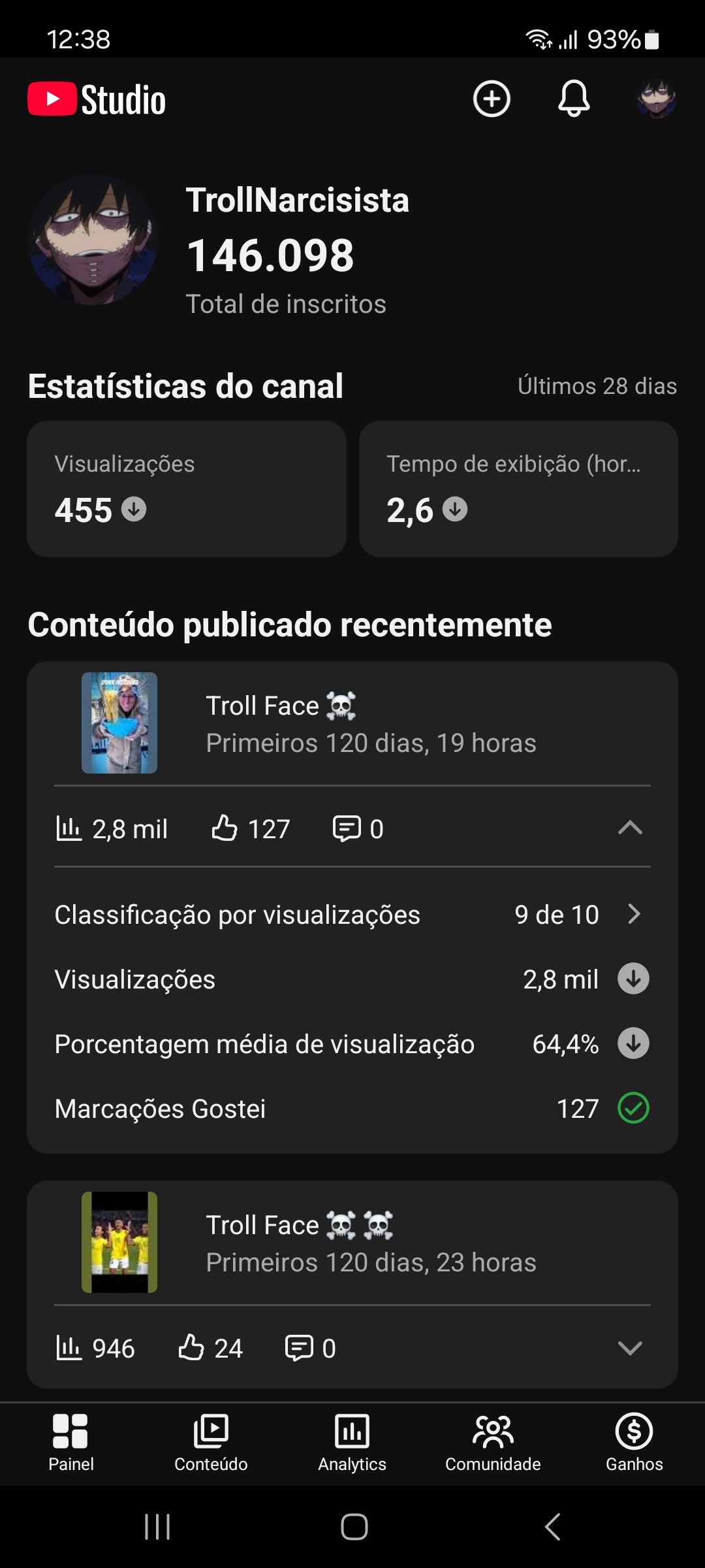 - Link da Conta: https://youtube.com/@trollnarcisista?si=HpqUJ10kK1AX1boW