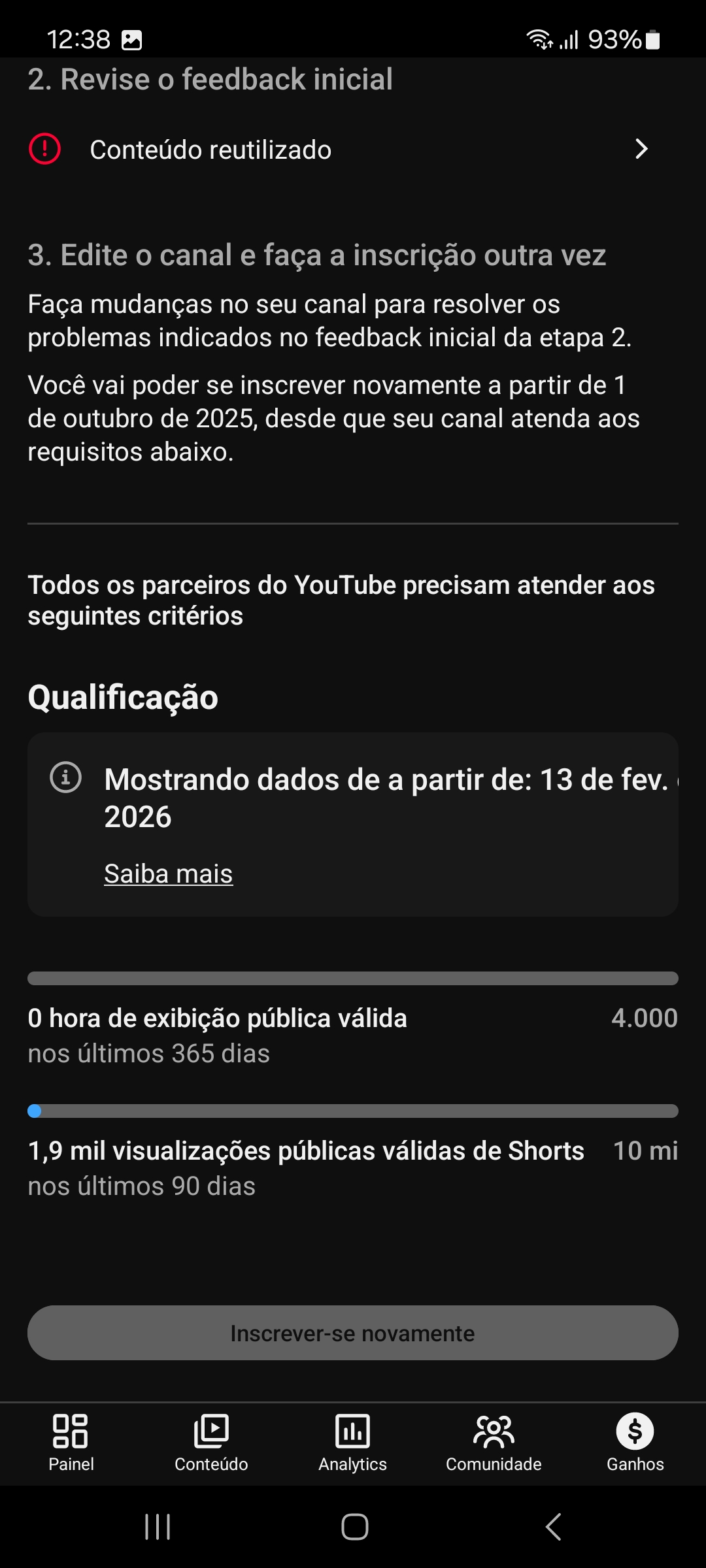 - Detalhes da Restrição: Canal era monetizado fez 3 mil no primeiro mês, só que foi desmonetizado por conteúdo reutilizado mais você pode monetizar novamente atingindo os requisitos