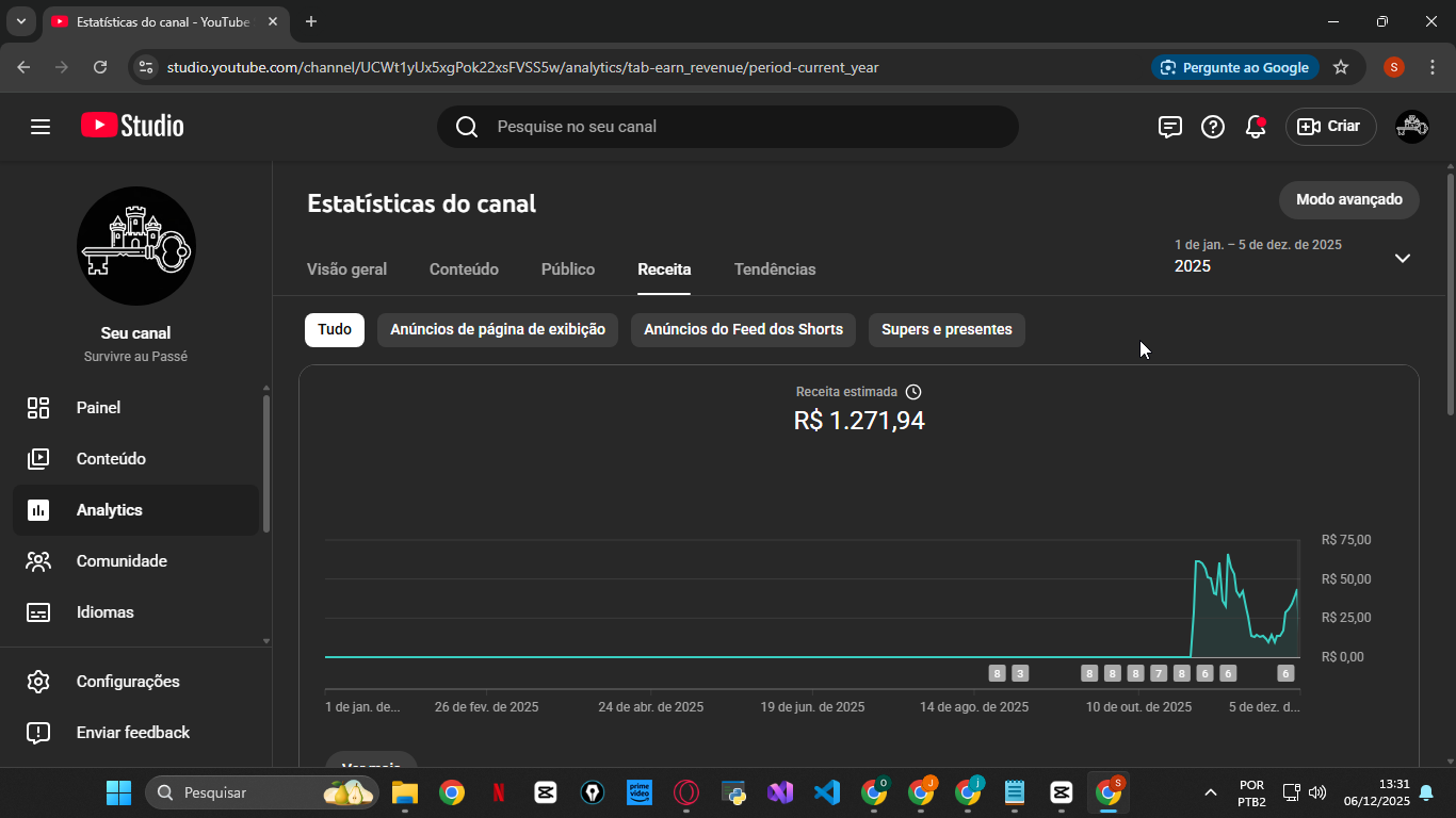 Canal monetizado há menos de 3 meses, já teve ótimas visualizações, basta achar o público certo, o idioma do canal é francês, vendendo pois tenho outros canais e não tô tendo tempo pra continuar esse.