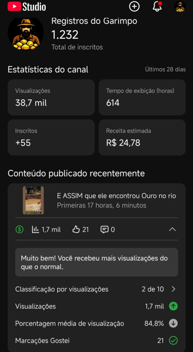 - Link da Conta: https://youtube.com/@registrosdogarimpo?si=D4eKxe9H41bqRRV9
