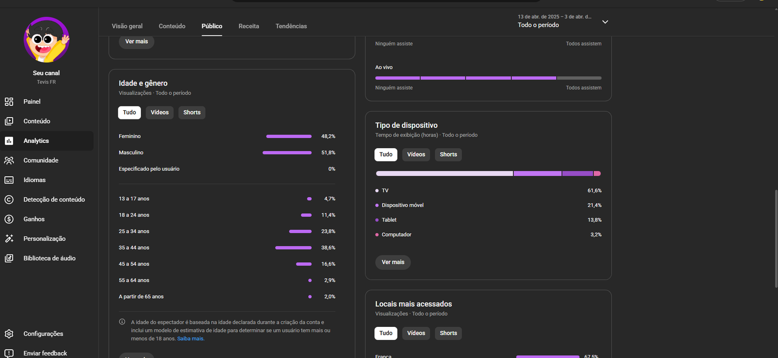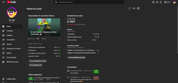 - Link da Conta: https://www.youtube.com/channel/UCZ7akr81eLvtI_2SbVhL8mQ/