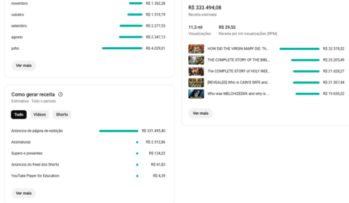 Canal de HISTÓRIAS BÍBLICAS em FRANCÊS: +56k de inscritos, R$ 77.000,00 de ADSENSE, +3,9m de views.
