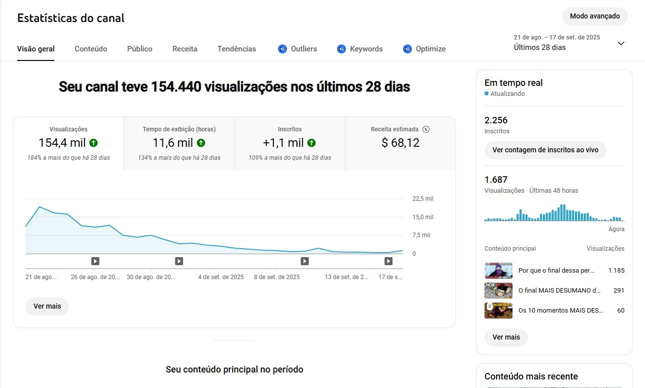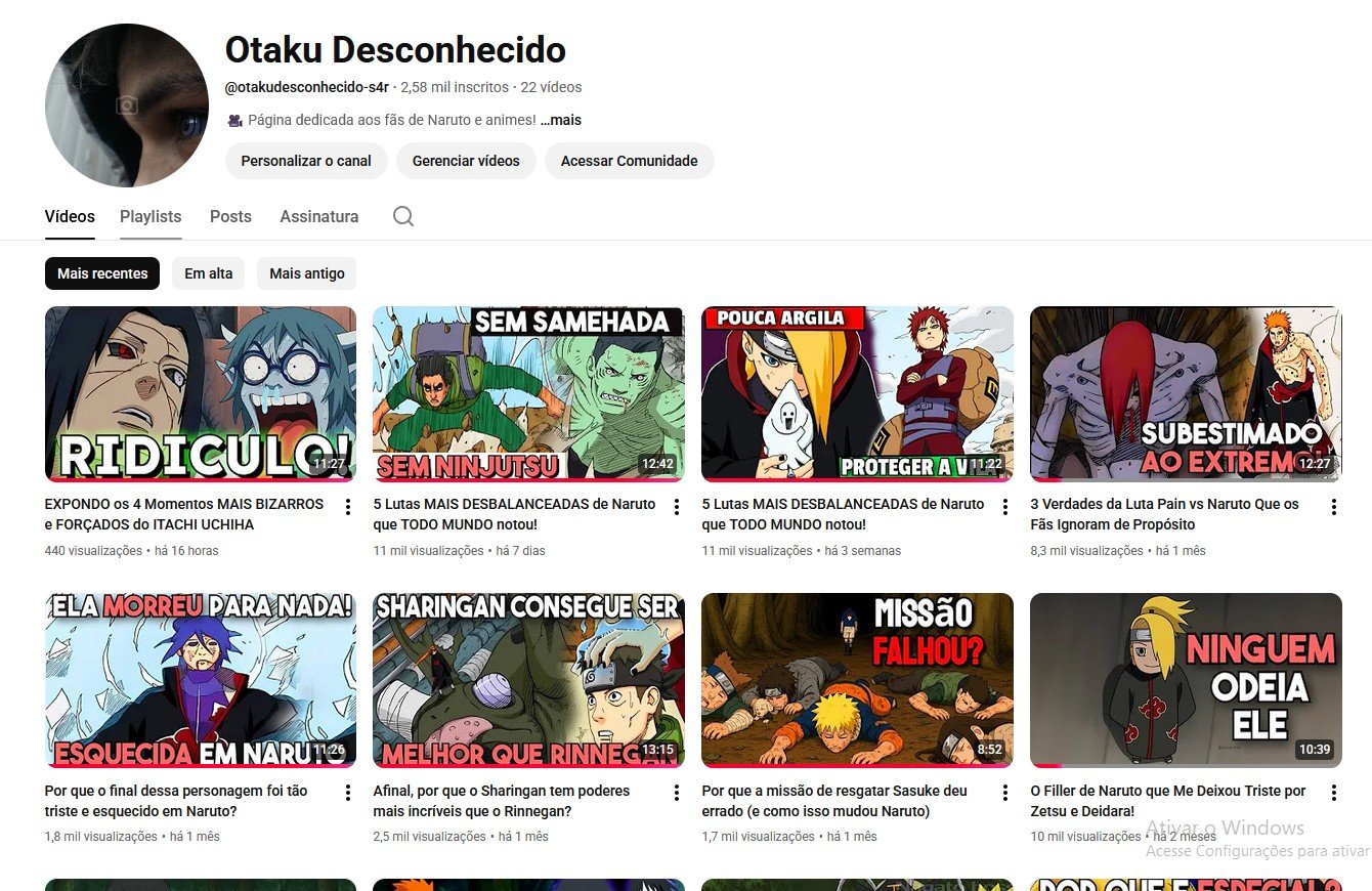 Canal criado faz pouco tempo para postar naruto e outros animes, Todos os videos atuais estão tendo boas recomendações, dependendo do tema eles podem ultrapassar mais de 50K de views, ele é basicamente meu xodozinho pra postar videos do meu anime favorito, então não tenho pressa em vender ele, e não venderei Por menos que isso, OBg