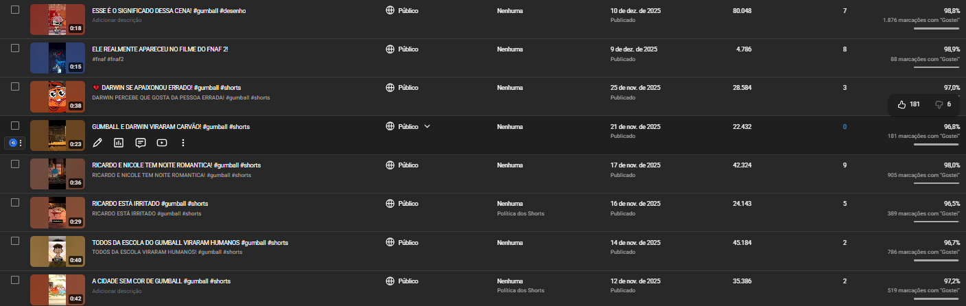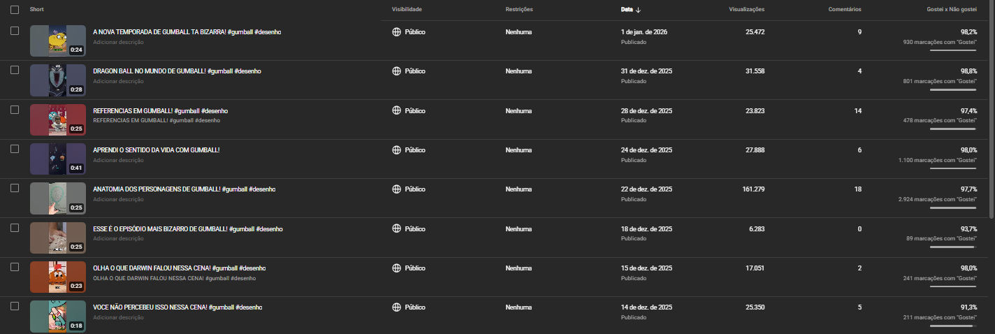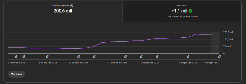 Com apenas 2 meses de vida, o canal já apresenta excelente desempenho no algoritmo, alcançando vídeos acima de 20 mil visualizações de forma recorrente.