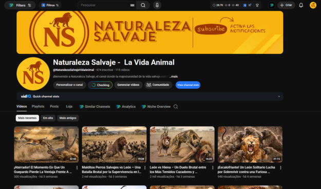 - Link da Conta: https://www.youtube.com/@NaturalezaSalvajeVidaAnimal