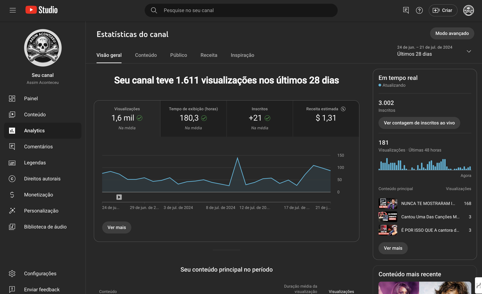 Vendo canal novo com potencial. Nicho bom de como famosos falceram. canal 100% monetizado.