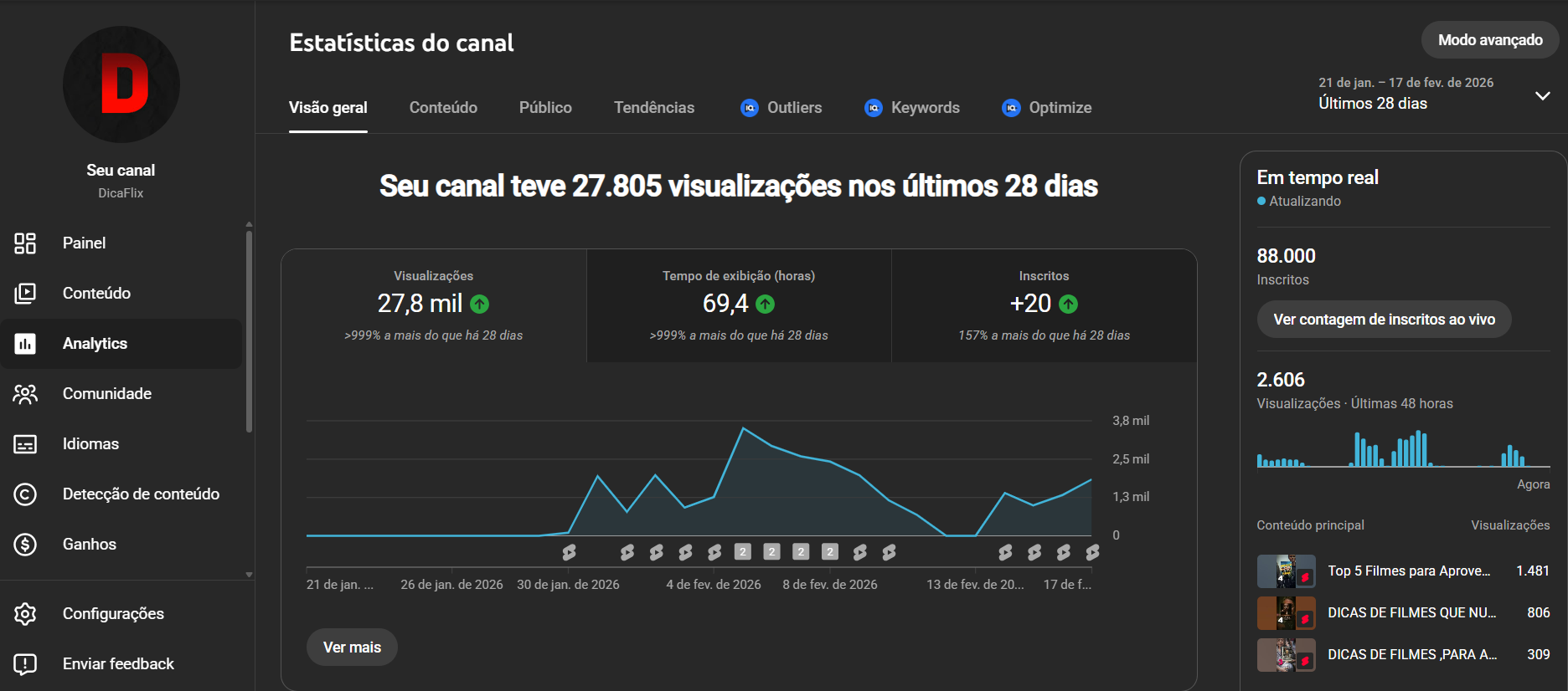 Canal de Filmes à Venda – 88 Mil Inscritos