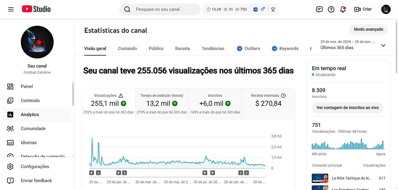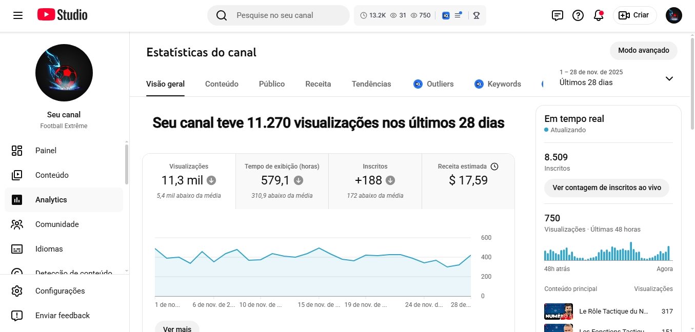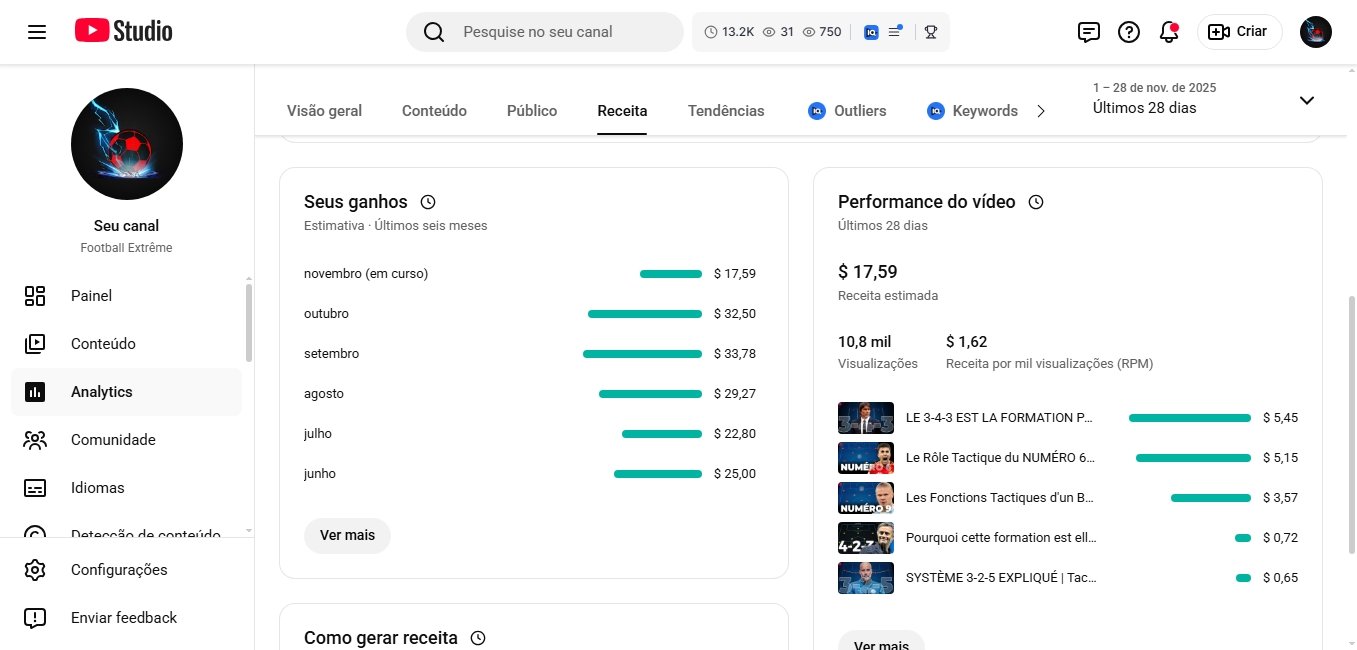 Canal de táticas de futebol em francês monetizado com 8,5k de inscritos.