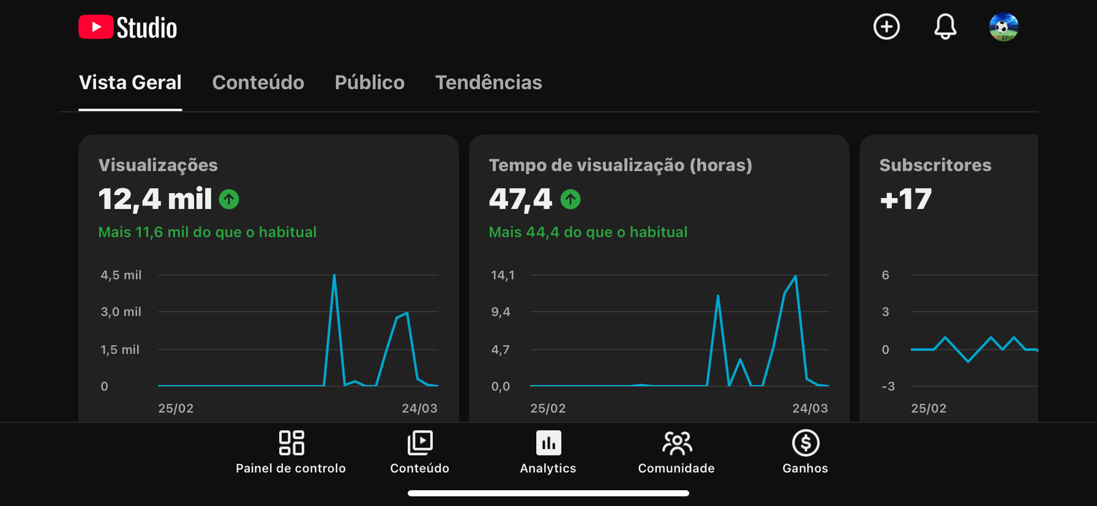 Estou vendendo um canal no nicho de futebol, ideal para quem quer começar já com base de público.