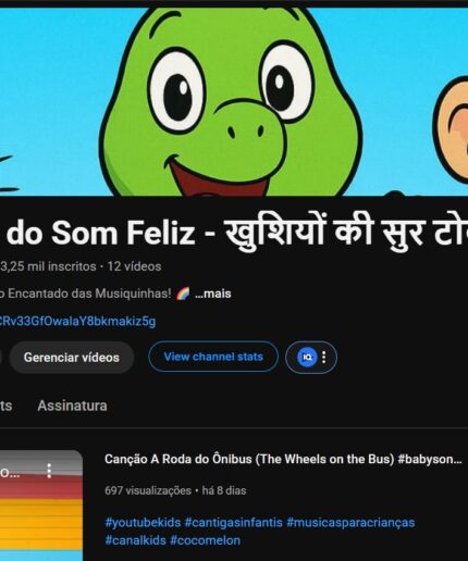 Canal Gringo YouTube Kids com 3254 Inscritos Monetizado