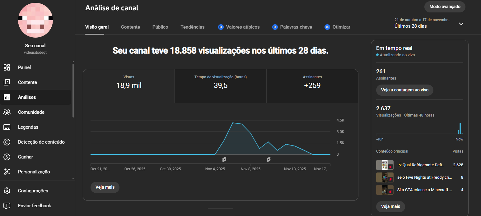 canal de games recomendando os vídeos, +18 mil visualizações em 2 videos e