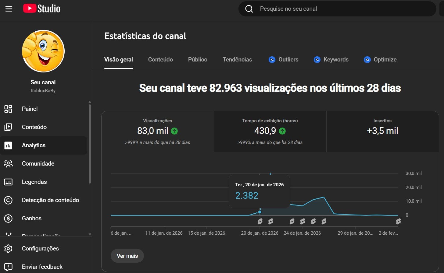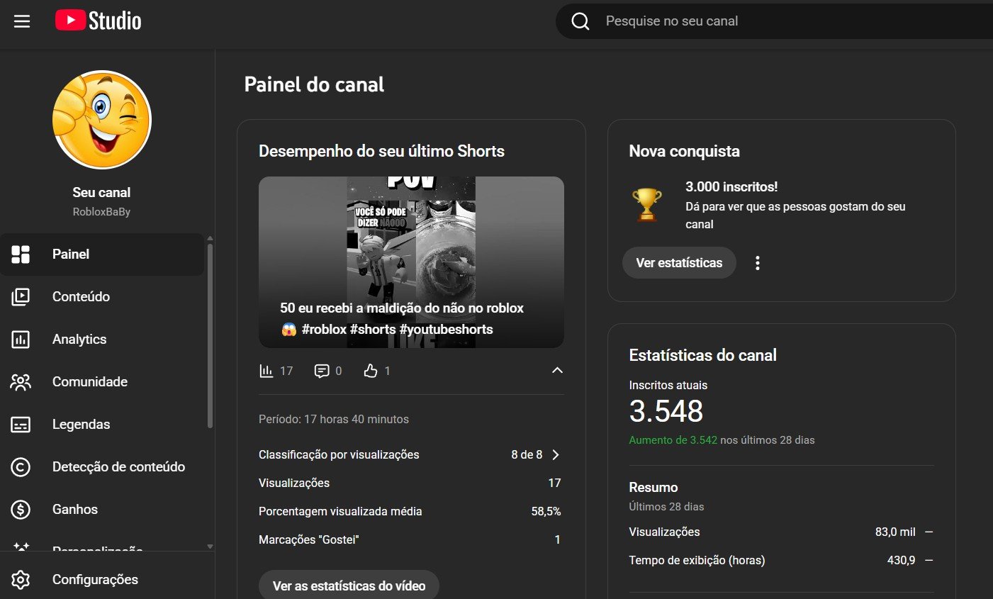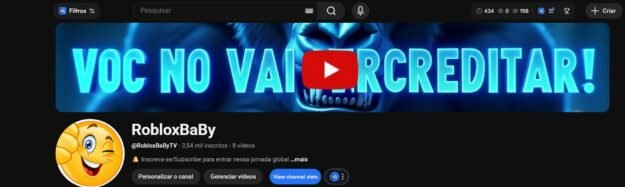 Canal de Danças com 310 inscritos, pode ser monetizado