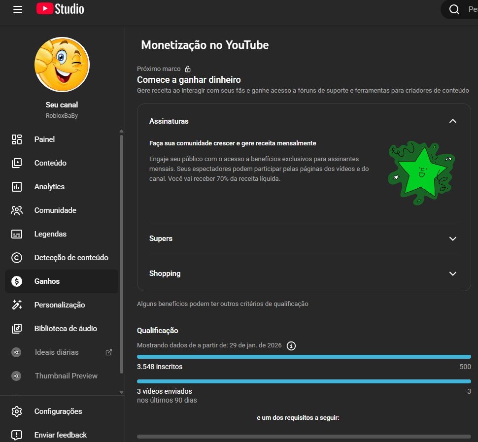 Canal de Games youtube com 3500 inscritos, pode ser monetizado