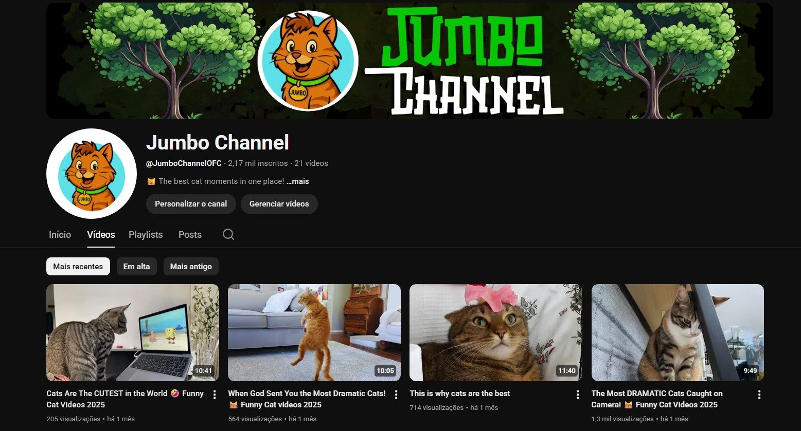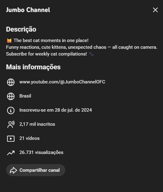 Por isso, não conseguimos manter as postagens no canal de gatos — o canal está sendo vendido por falta de tempo, não por queda de performance.