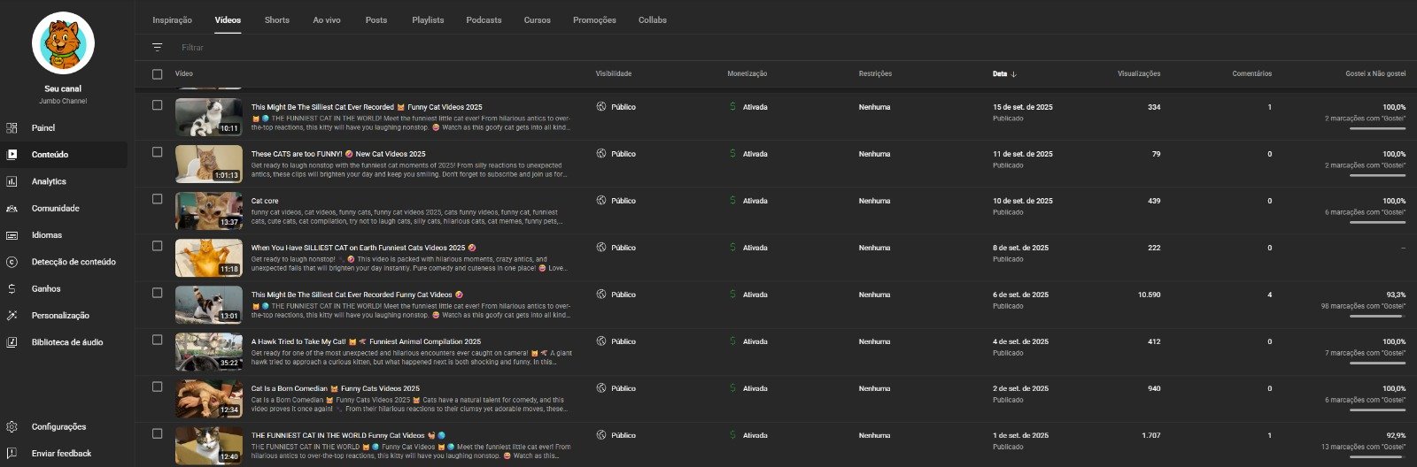 Um canal saudável, com RPM alto, nicho seguro, público global, fácil de manter e acompanhado de uma das maiores bibliotecas de vídeos de gatos do mercado: 9.000 arquivos exclusivos.