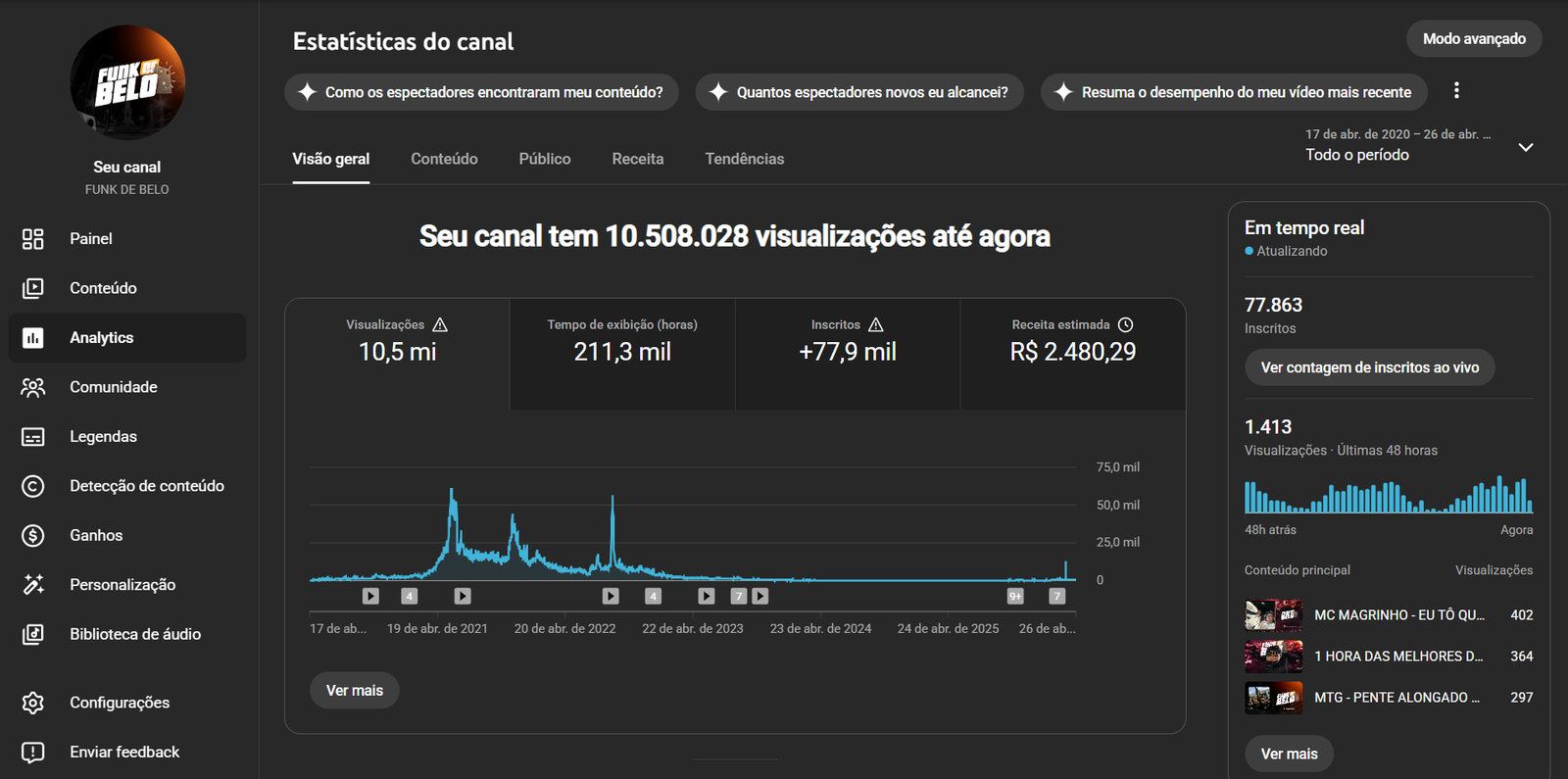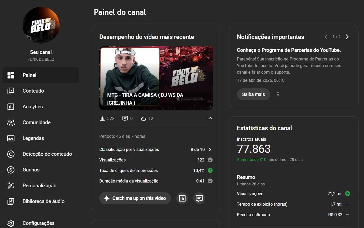 CANAL DE MUSICA 77.800 INSCRITOS – MONETIZADO!!