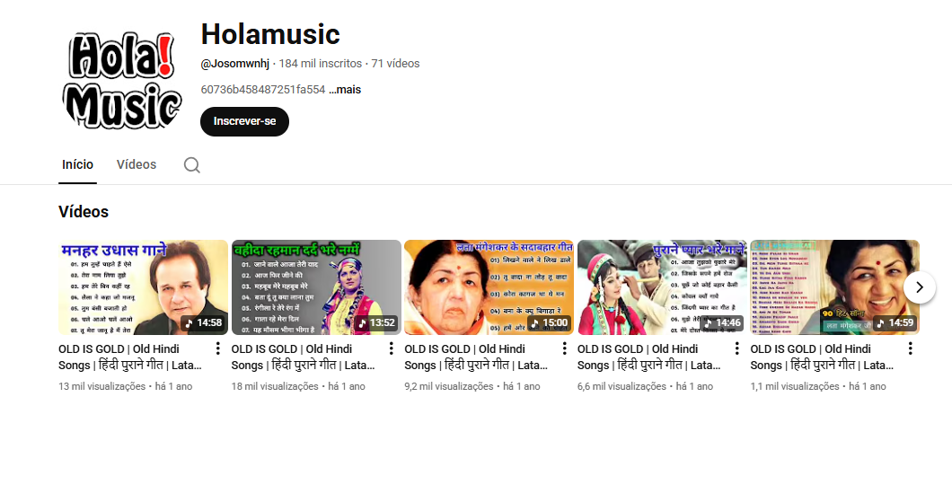 Vende-se canal de música com mais de 184 mil inscritos, ótima oportunidade para quem trabalha com vídeo review e deseja ranquear produtos de media/baixa concorrência.