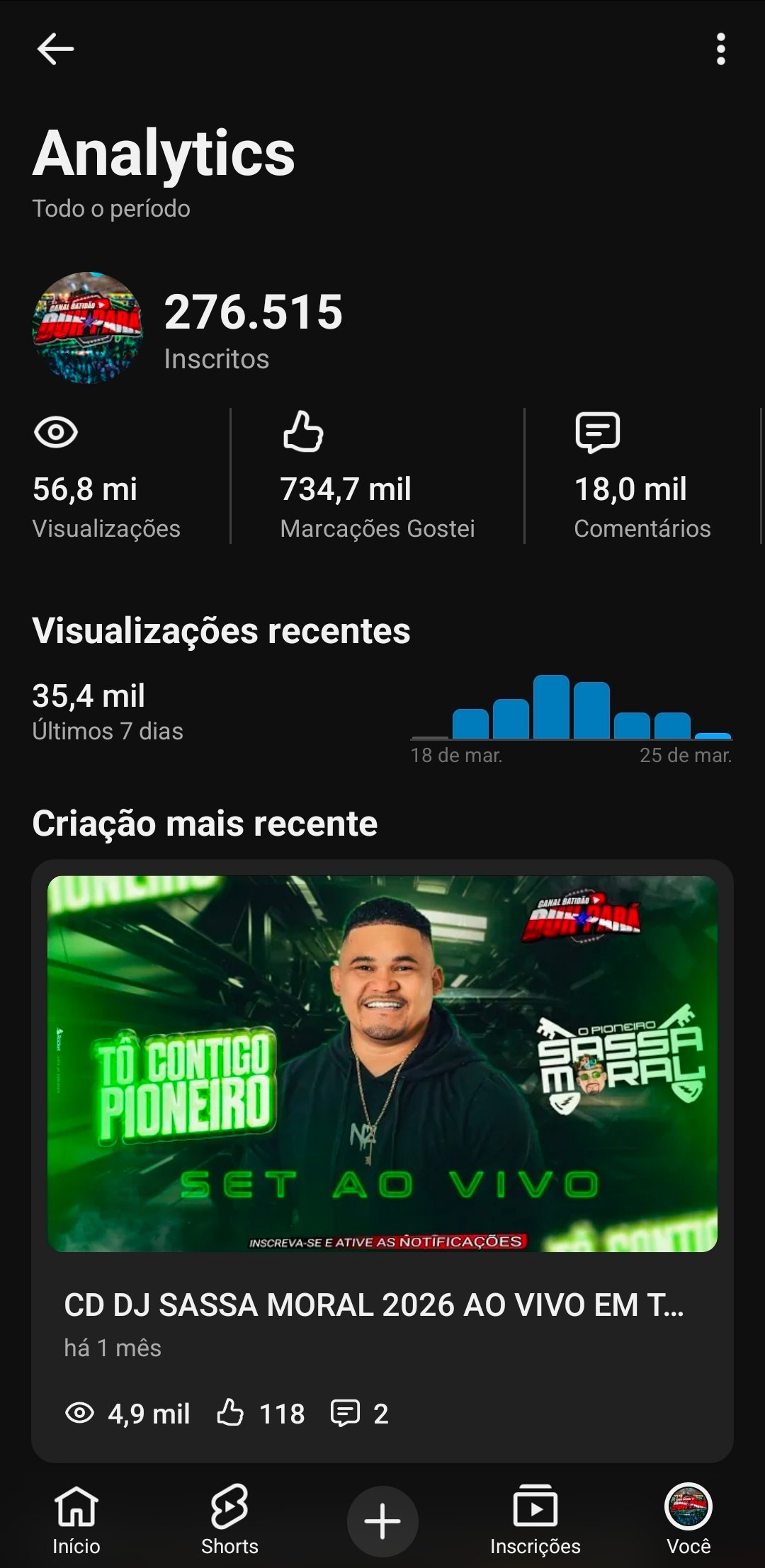 Canal de música engajado com 276 Mil Inscritos valor 4.000