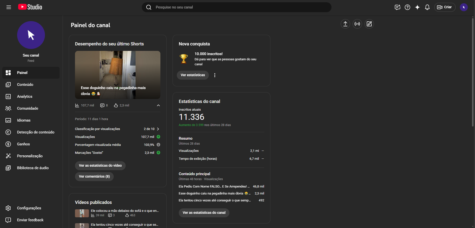 Canal de Shorts à venda – +11K inscritos / +8,3M views