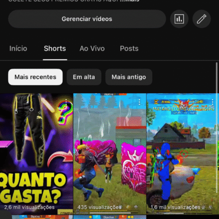 canal de youtube 248K , bem engajado , sobe muito shorts!!