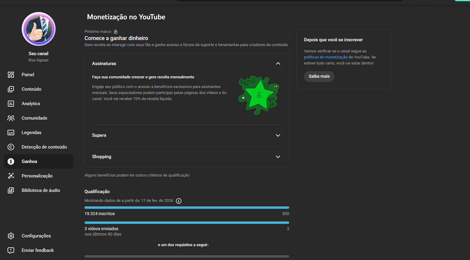 - Link da Conta: https://www.youtube.com/@RiseSignals