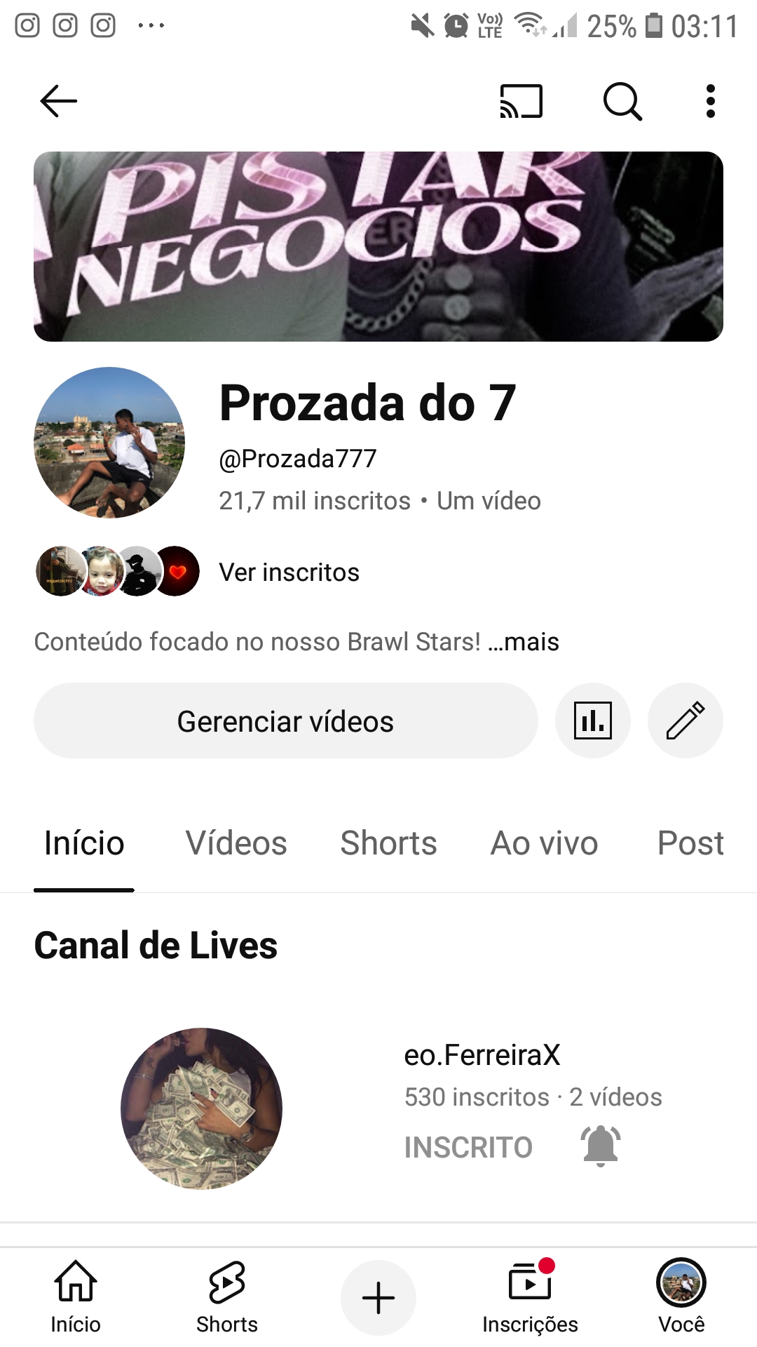 CANAL DE YOUTUBE COM 21K DE INSCRITOS