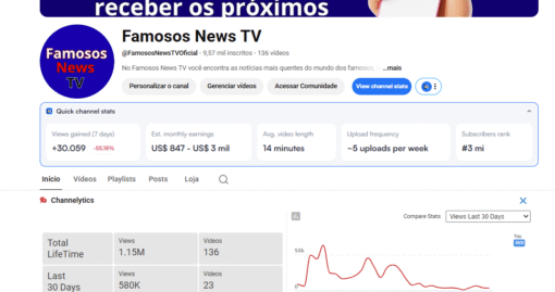 Canal do YouTube 1,07 mil inscritos