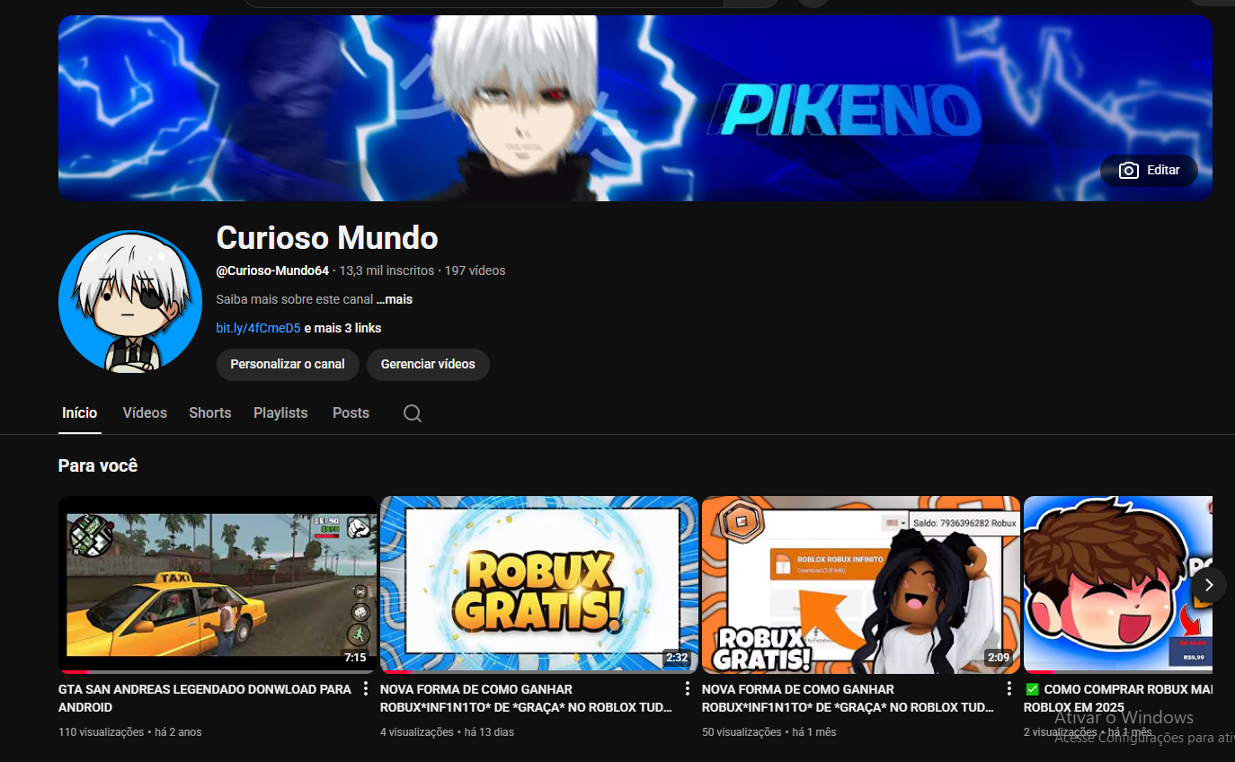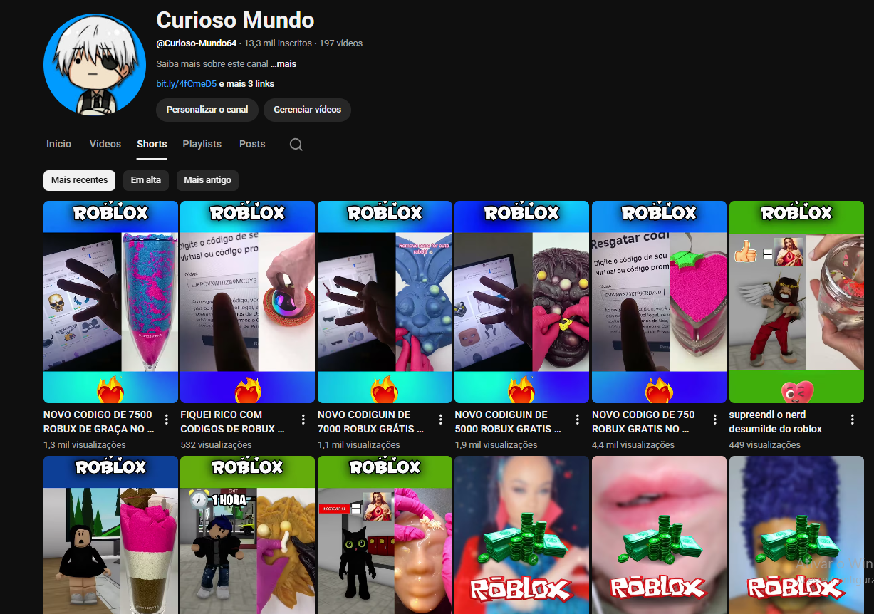 canal do youtube 6,56 mil inscritos desmonetizado de shorts barato