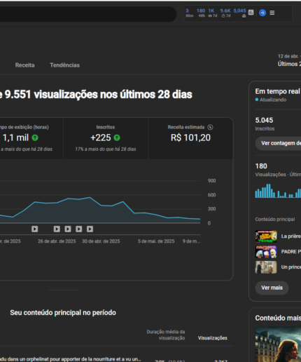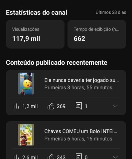 Canal com 400 horas de exibição e vídeos bem engajados 📢