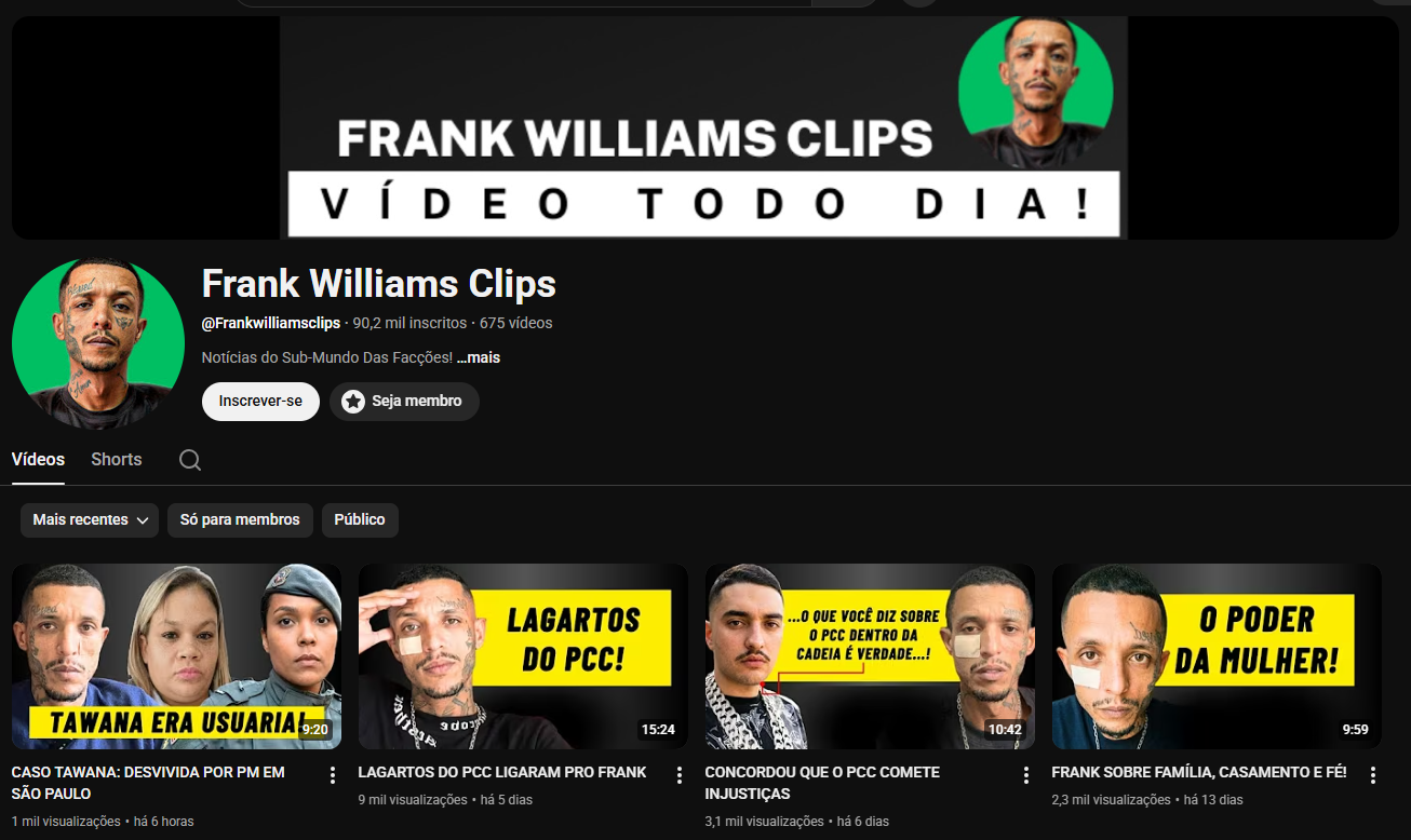 - Link da Conta: https://youtube.com/@frankwilliamsclips?si=-e0Xs6B8TjVuOHM4