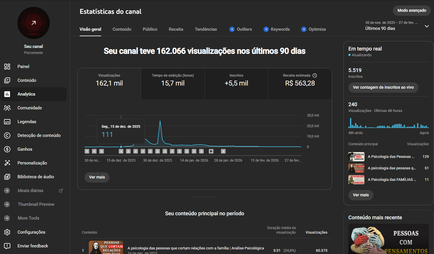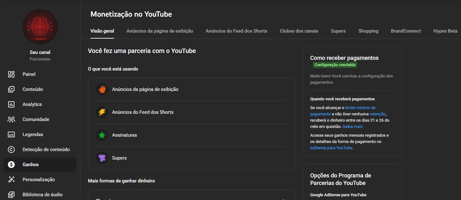 Canal do Youtube Monetizado. Canal do youtube monetizado nicho Psicologia. Canal do YouTube pra vender.