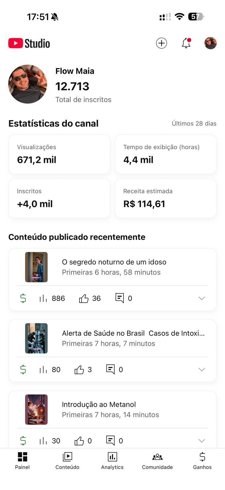 Canal com 12.000 inscritos reais e ativos, crescendo todos os dias!
