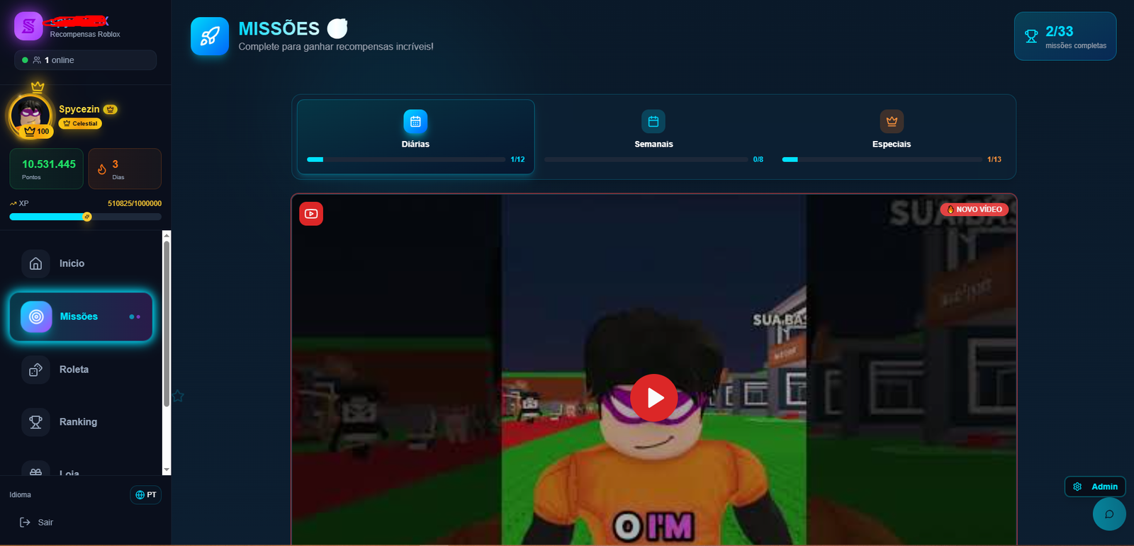 Plataforma completa focada na comunidade Roblox, criada para engajamento diário e monetização inteligente.