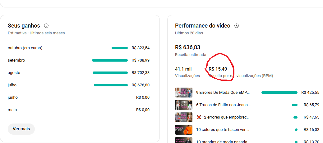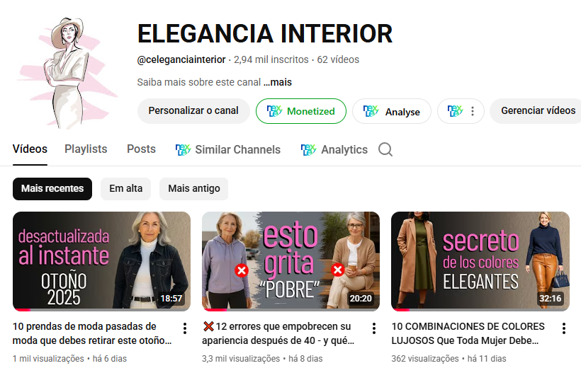 NICHO: MODA 50+. 2.900 INSCRITOS. RPM: R$ 15,49. NENHUM PROBLEMA DE MONETIZAÇÃO.