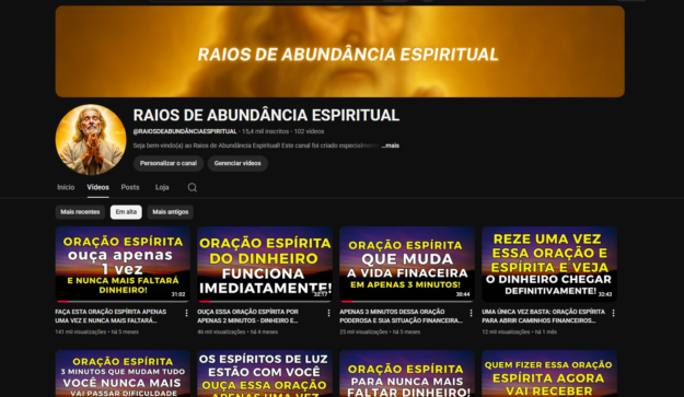 Canal de Espiritualidade monetizado com 15,6 mil inscritos e 102 vídeos postados. Aberto a propostas!