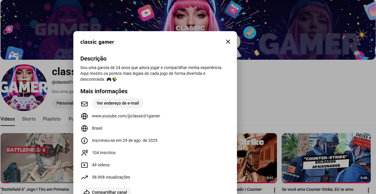 CANAL YOUTUBE DE INFLUENCER COM 90.639K VISUALIZAÇÕES 2.658.847 NUNCA LEVOU STRIKE