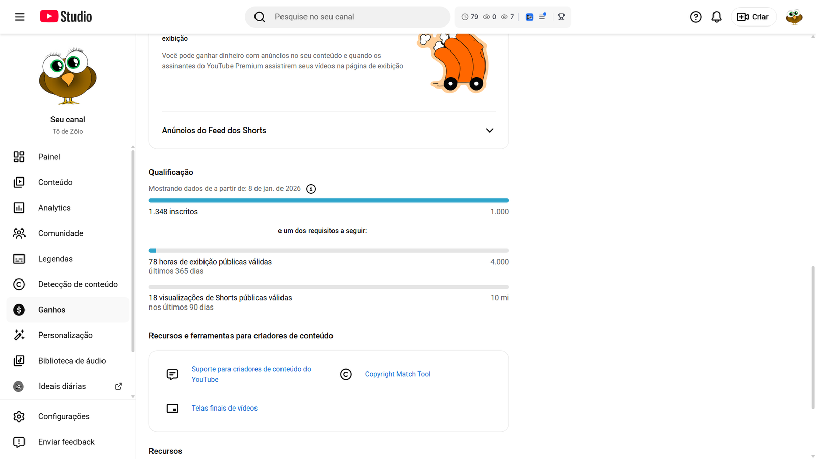 Informações do Canal ‘Tô de Zóio’: