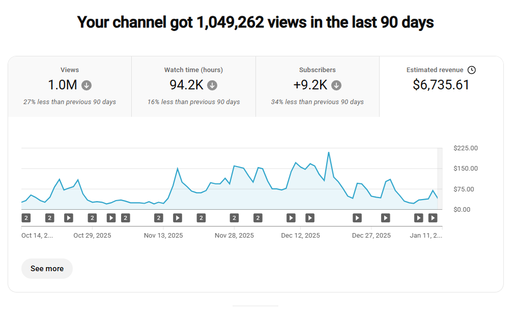 RPM médio entre US$ 5 e US$ 10, variando conforme o vídeo