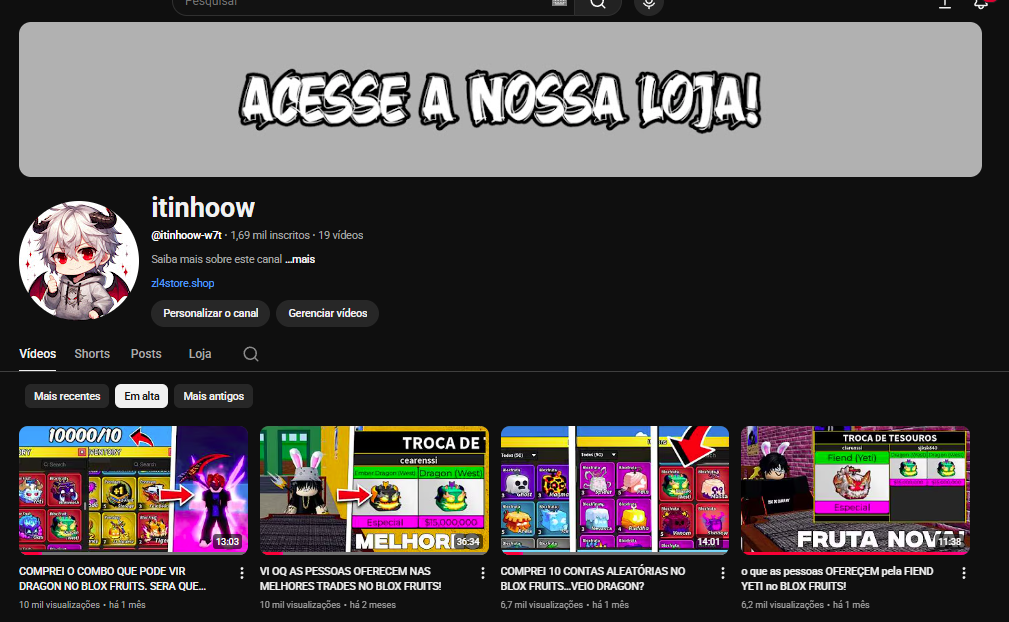 - Link da Conta: https://www.youtube.com/channel/UC1JhRRArHK8jkdmYGmykJBQ